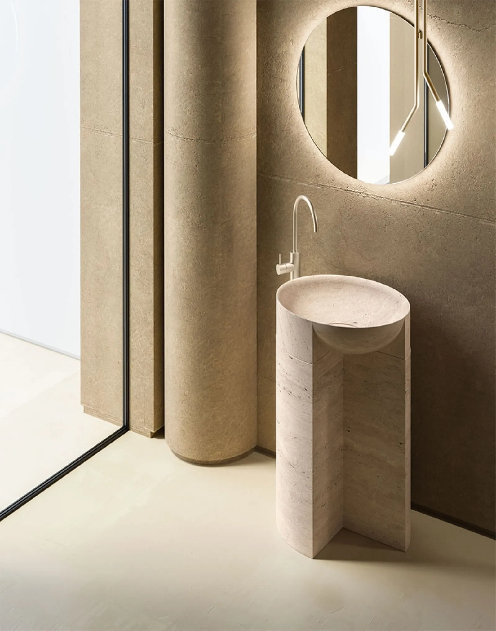 Cerasa mineral resin sanitary ware: click and discover the Des Evolution Caramel 01 bathroom design for your bathroom.