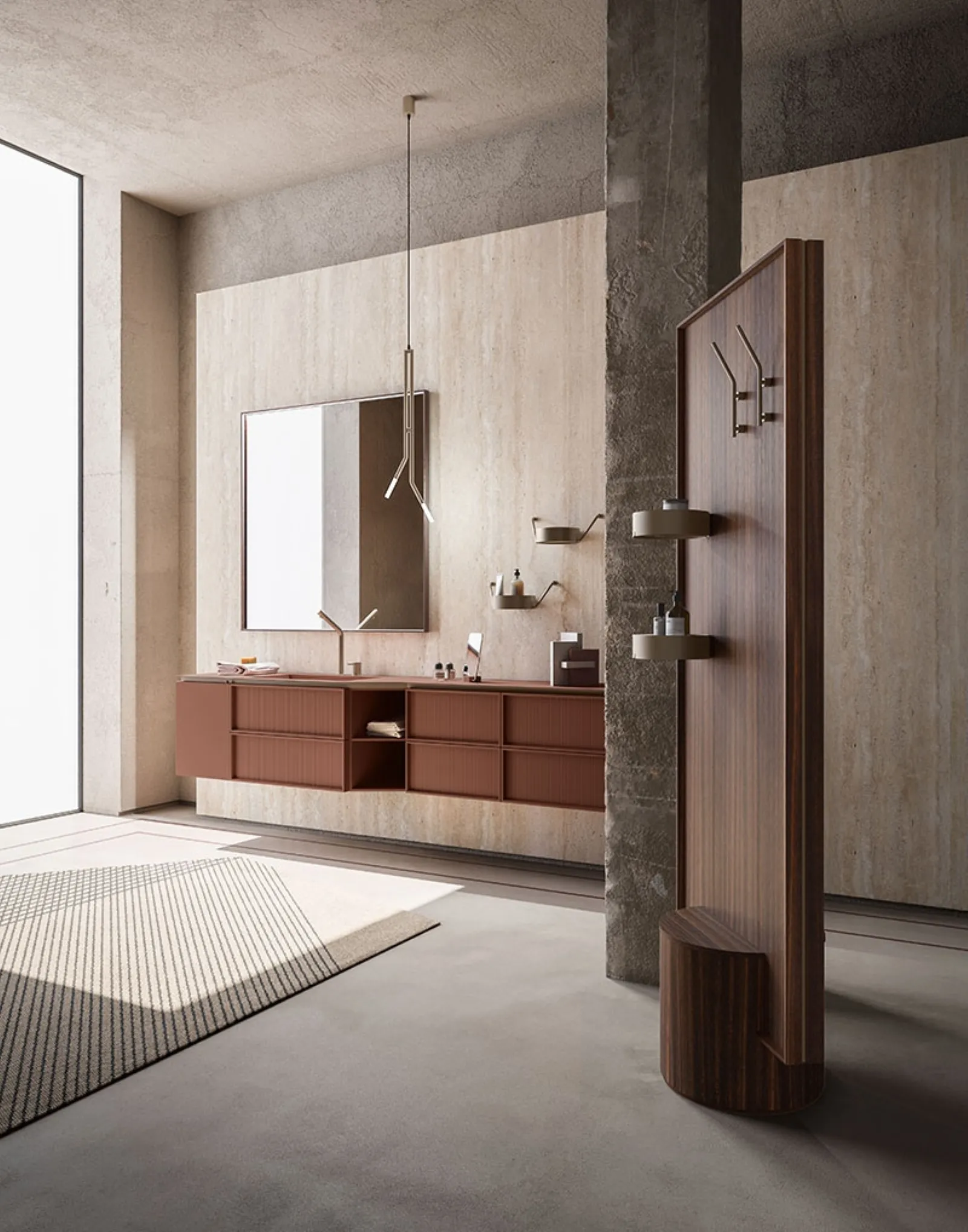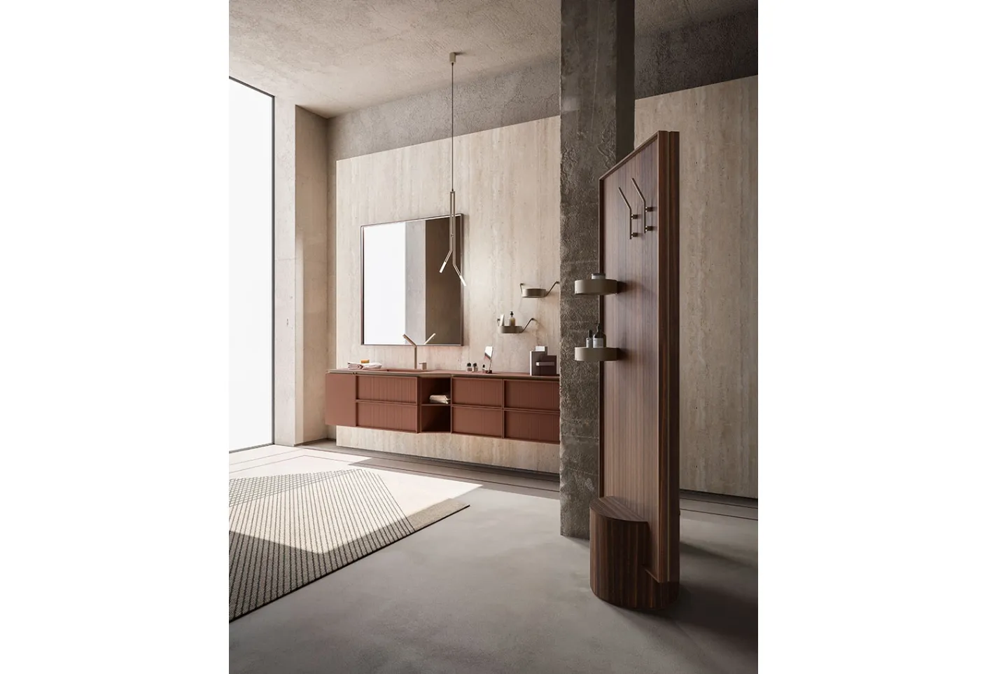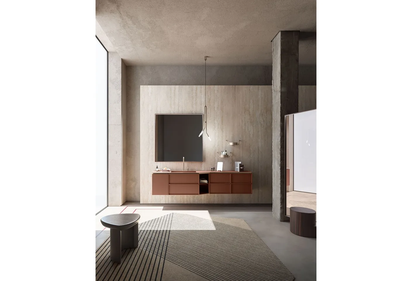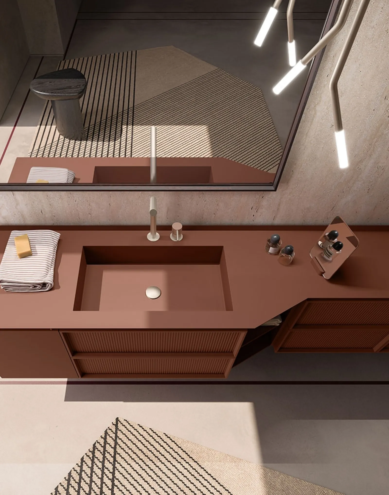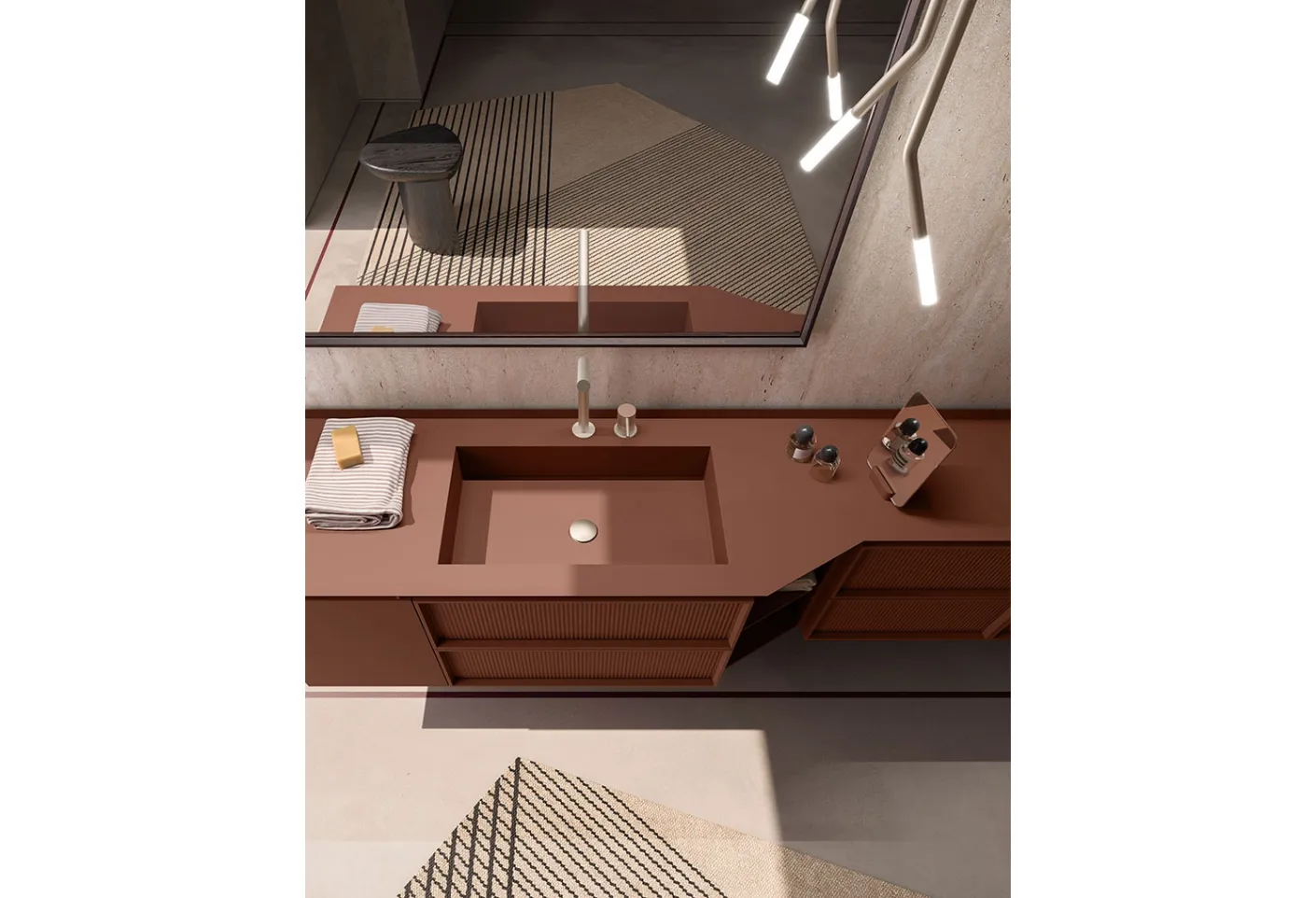 Suspended bathroom furniture in matte lacquer by Cerasa: click and discover the Des Evolution Sandstone 01 bathroom design for your home.