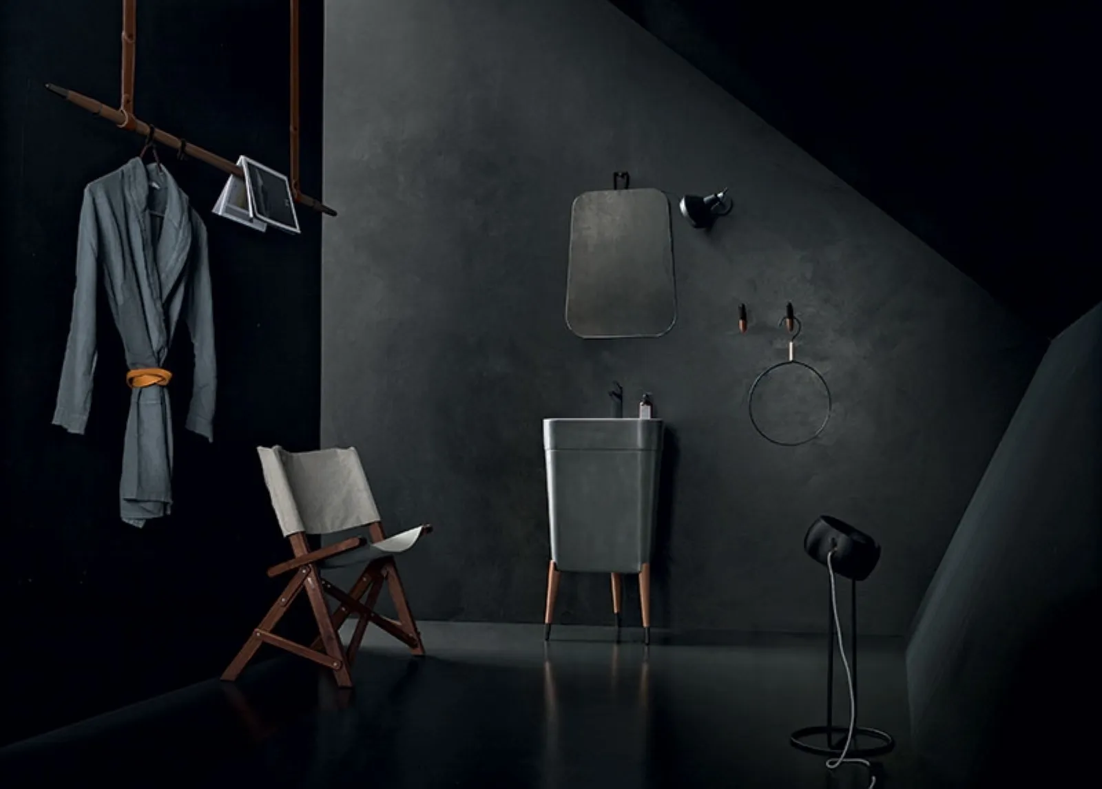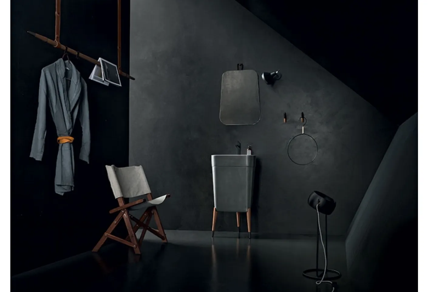 Furnish the wellness room with perfect design using Free 03, floor-standing bathroom furniture and matte lacquered accessories by Cerasa.
