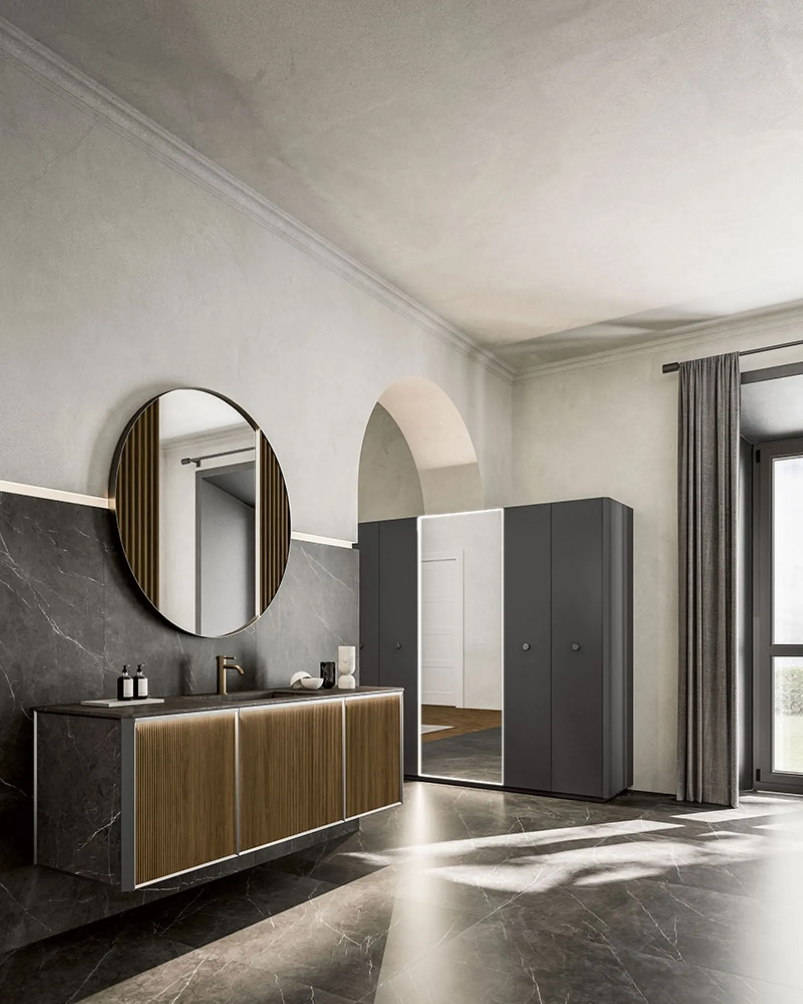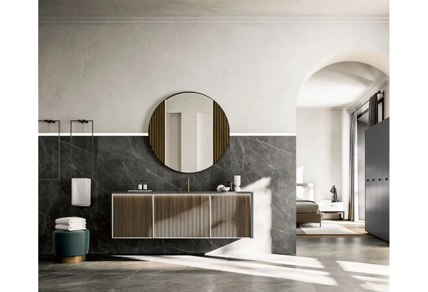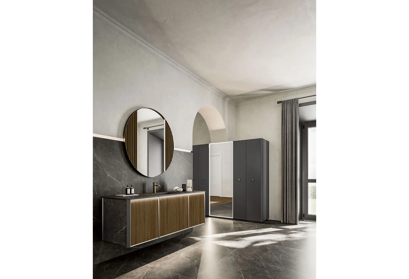 Hanging Bathroom Vanity Honey 03 by Cerasa: click and get information on suspended wooden bathroom furniture and accessories from the brand.