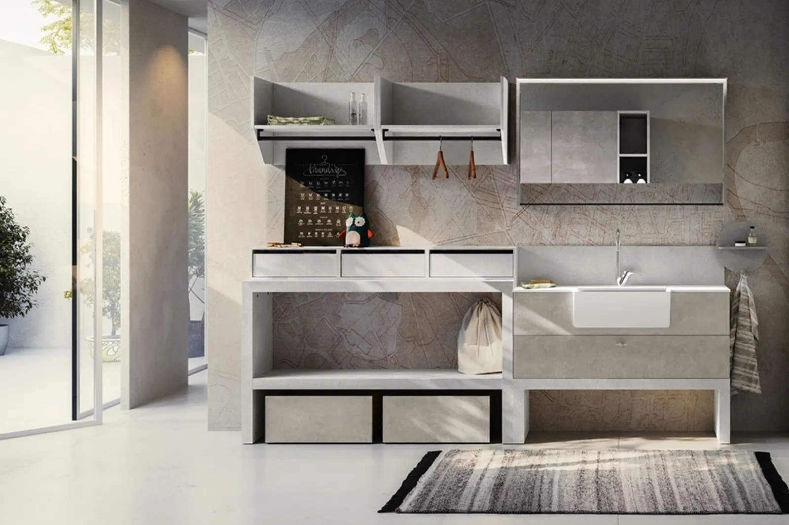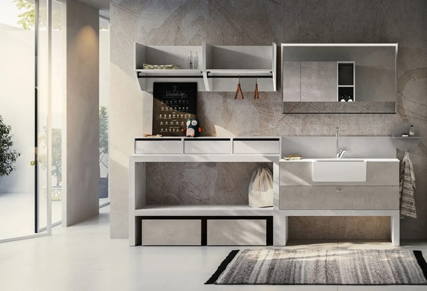Bathroom furniture for laundry in melamine from the Cerasa brand: click and discover the modern bathroom furniture Rule 01 for the wellness room.