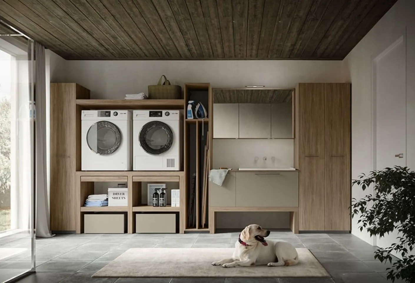Furnish your modern home bathroom to perfection with Regola 04, laundry bathroom furniture and melamine objects by Cerasa.