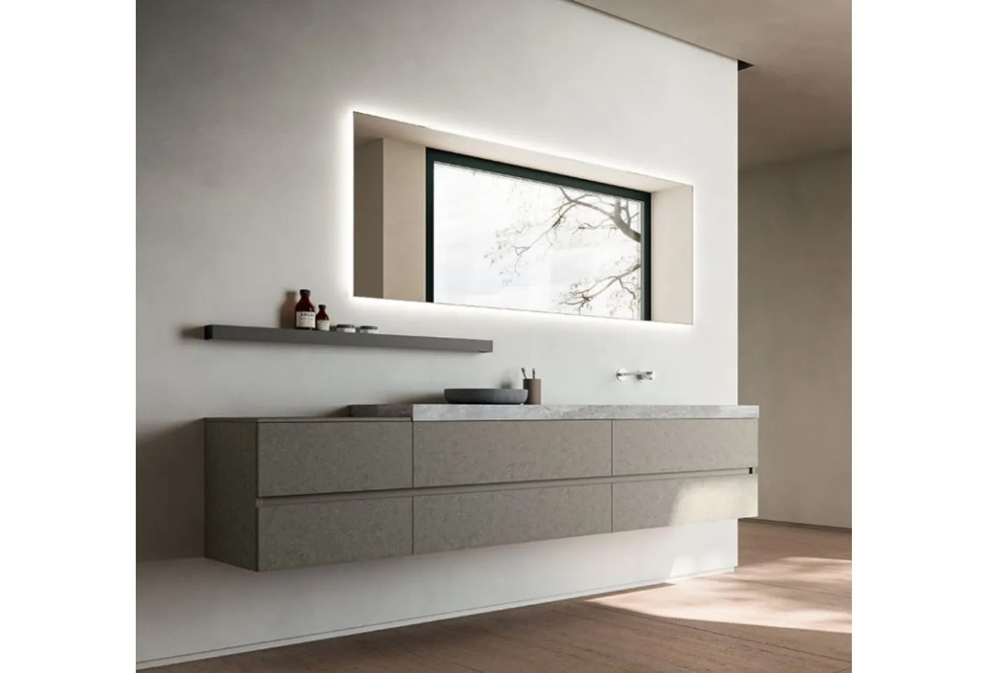 Cerasa brand suspended bathroom furniture in melamine: click and discover the modern bathroom decor Segno 01 for the home bathroom.