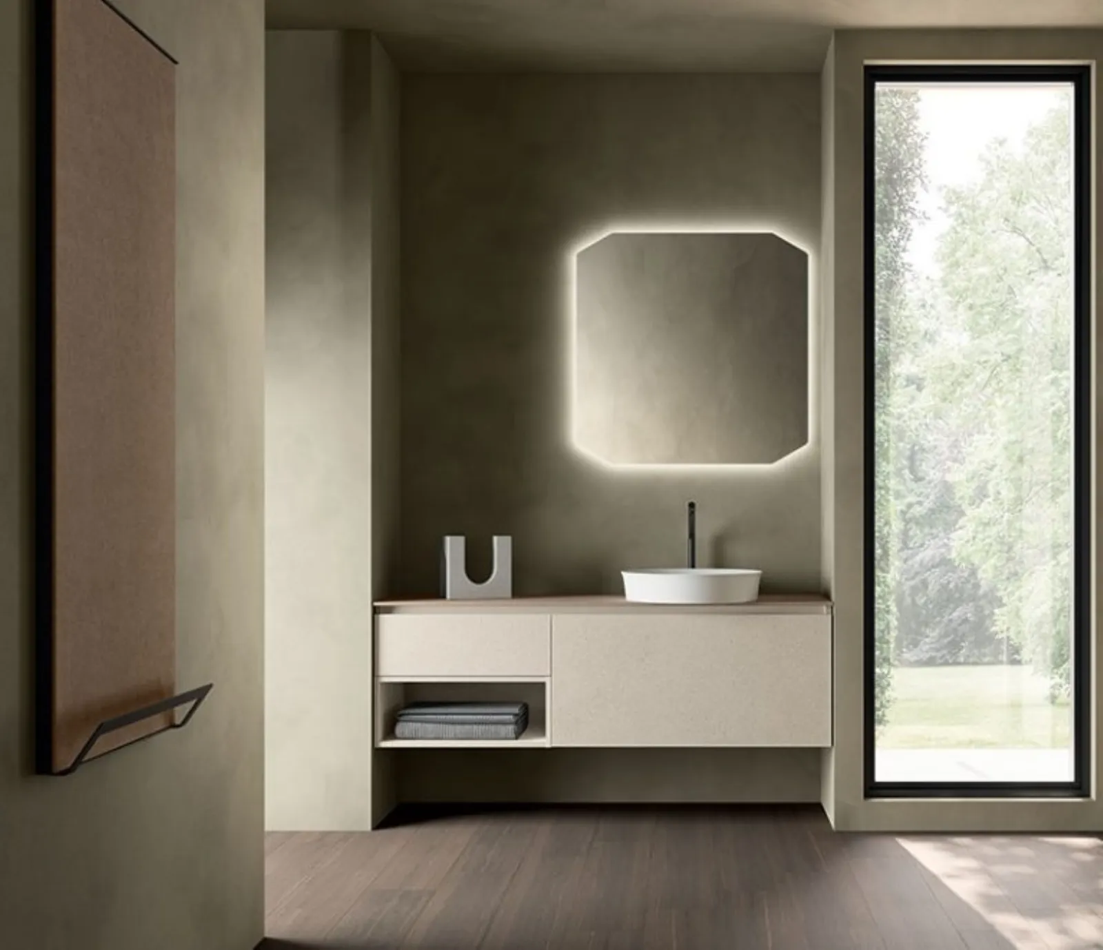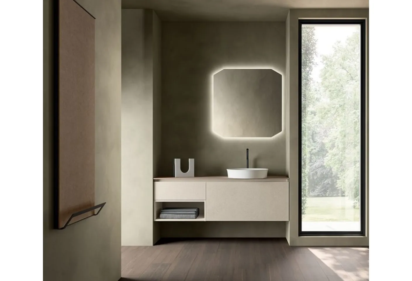 Suspended bathroom furniture in melamine by the Cerasa brand: click and discover the modern bathroom furniture Segno 02 for your home bathroom.