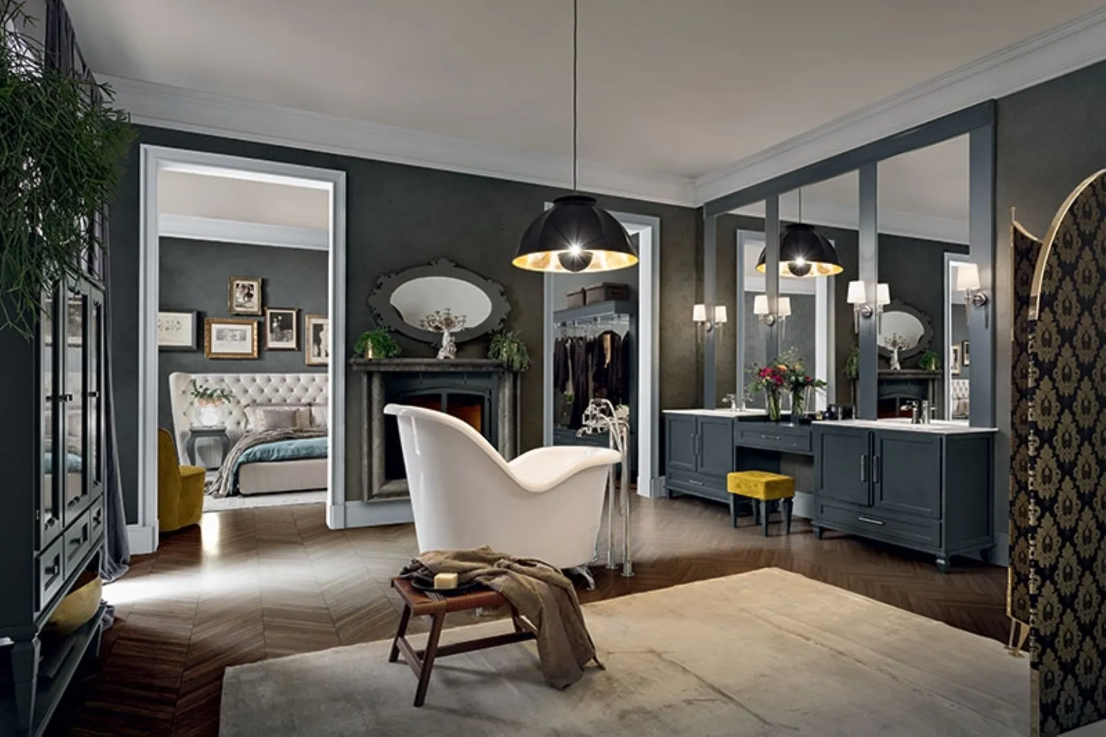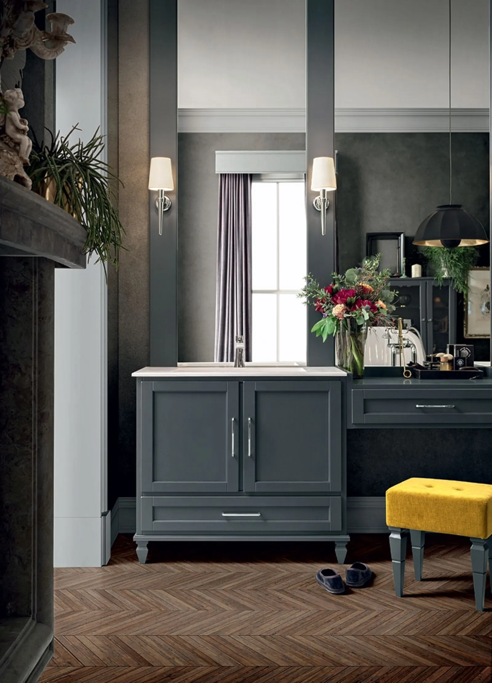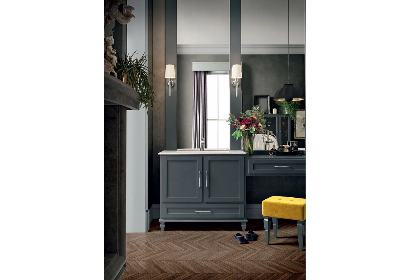 Furnish the classic home bathroom to perfection with York 02, floor-standing bathroom furniture and accessories in matte lacquer by Cerasa.