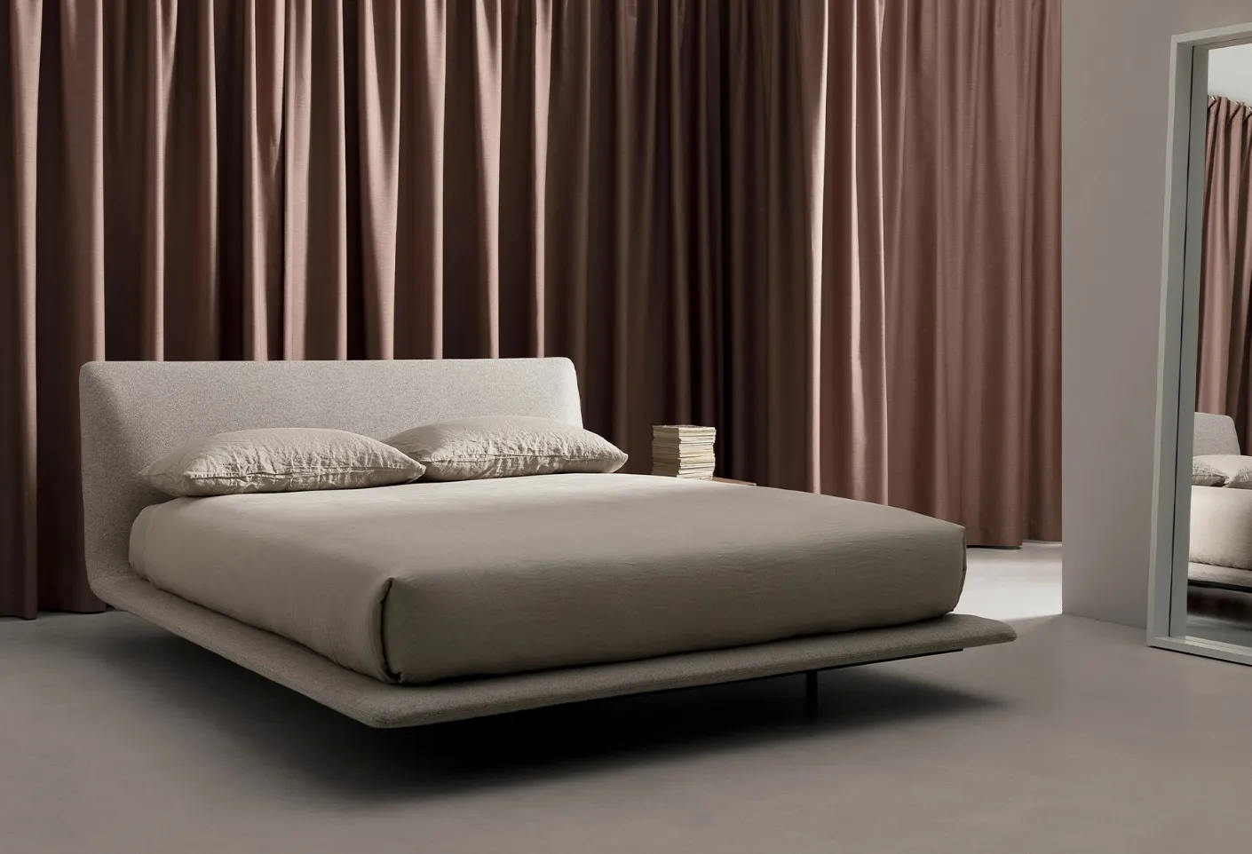 During the choice of the right type of bed, carefully consider its dimensions, materials, shape, and its style in relation to the rest of the furnishings. The Kristalia Legri design bed creates a familiar and comfortable space in every room, ensuring total relaxation and a unique design. If you want a fabric solution, the model visible in the photo is characterized by durable materials and clean lines, which invite you to a peaceful and restorative rest. Choose colors and finishes and realize your furnishing concept in the room, designing it just as you have always dreamed.