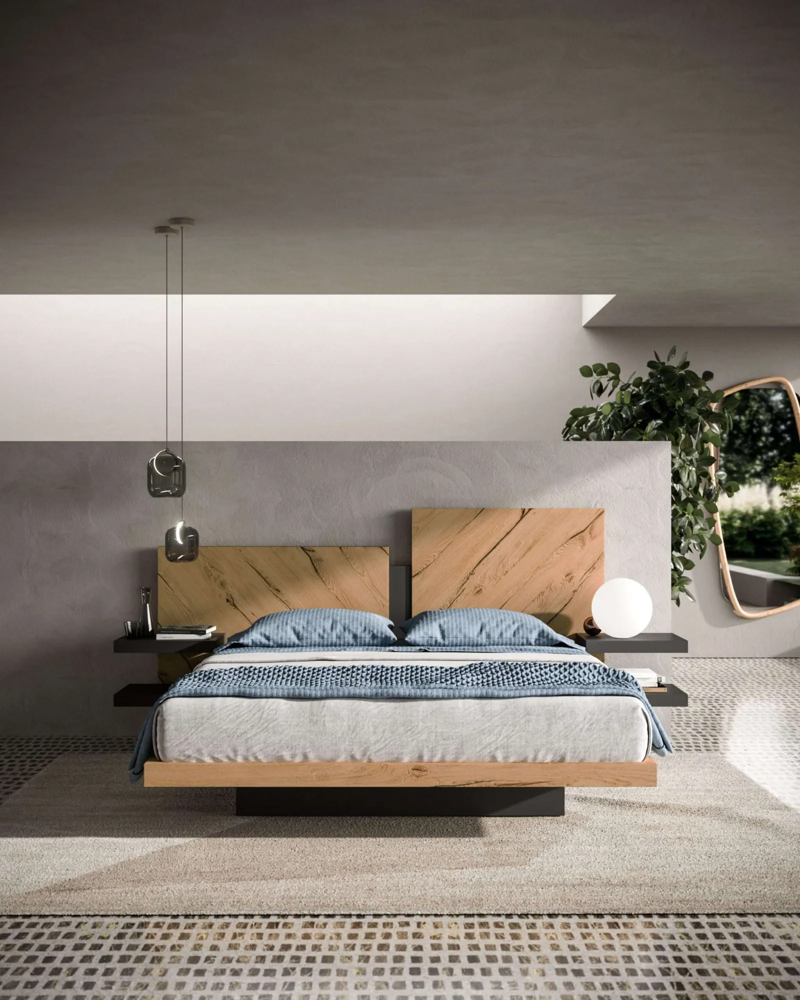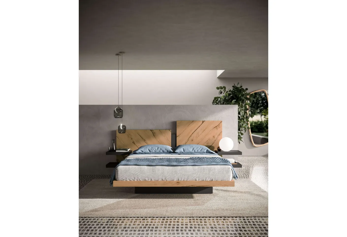 The Nazarè Bed by Ozzio creates an intimate and comfortable space in every room, ensuring you the best rest and a unique style.
