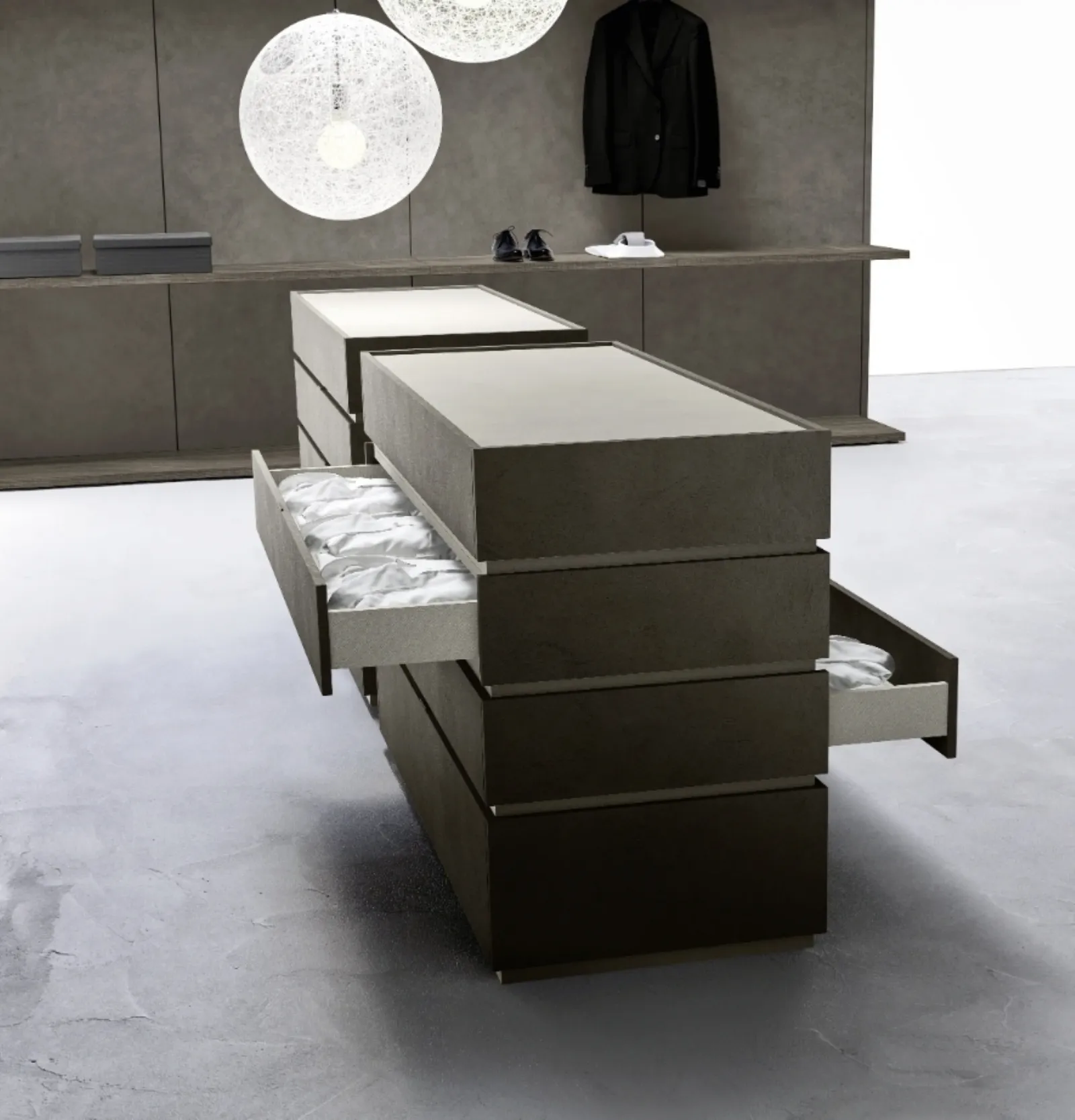 Bedside tables are furniture pieces that can complete the bedroom by providing a useful and versatile surface for various items. Sangiacomo's Modular Wire Chest of Drawers features precious materials and excellent craftsmanship in melamine, available in the showroom along with other unique ideas from the company, to make the sleeping area a place that reflects your personality.