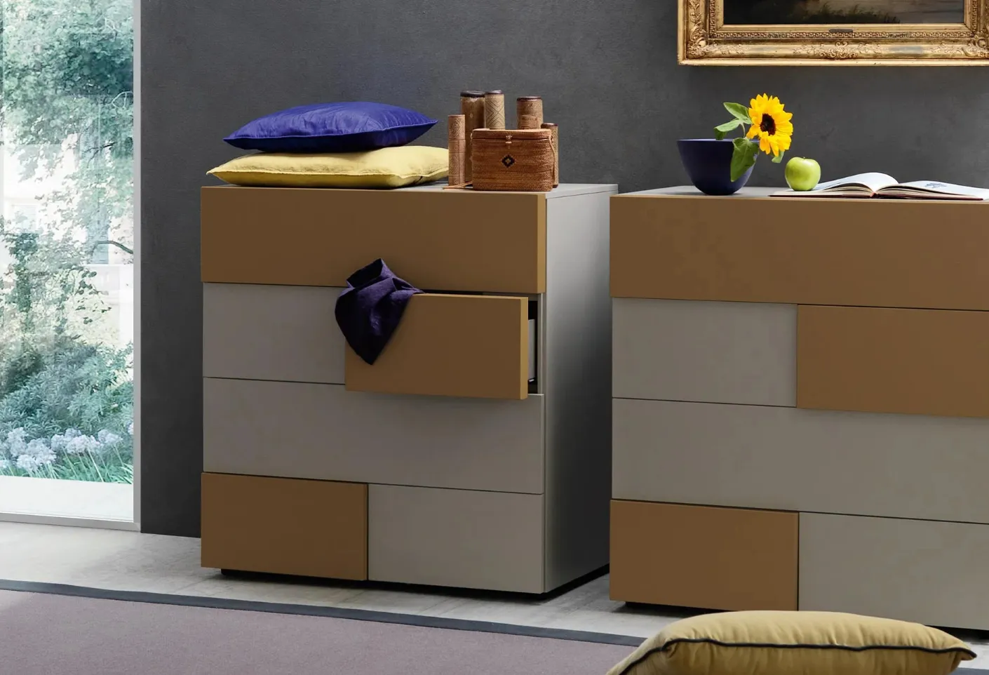 Discover modern bedside tables and dressers by Sangiacomo! The Insieme Cassettiera model, built in matte lacquered finish, is the best purchase.