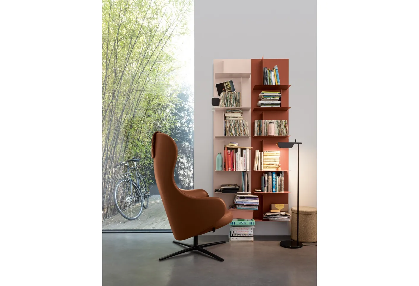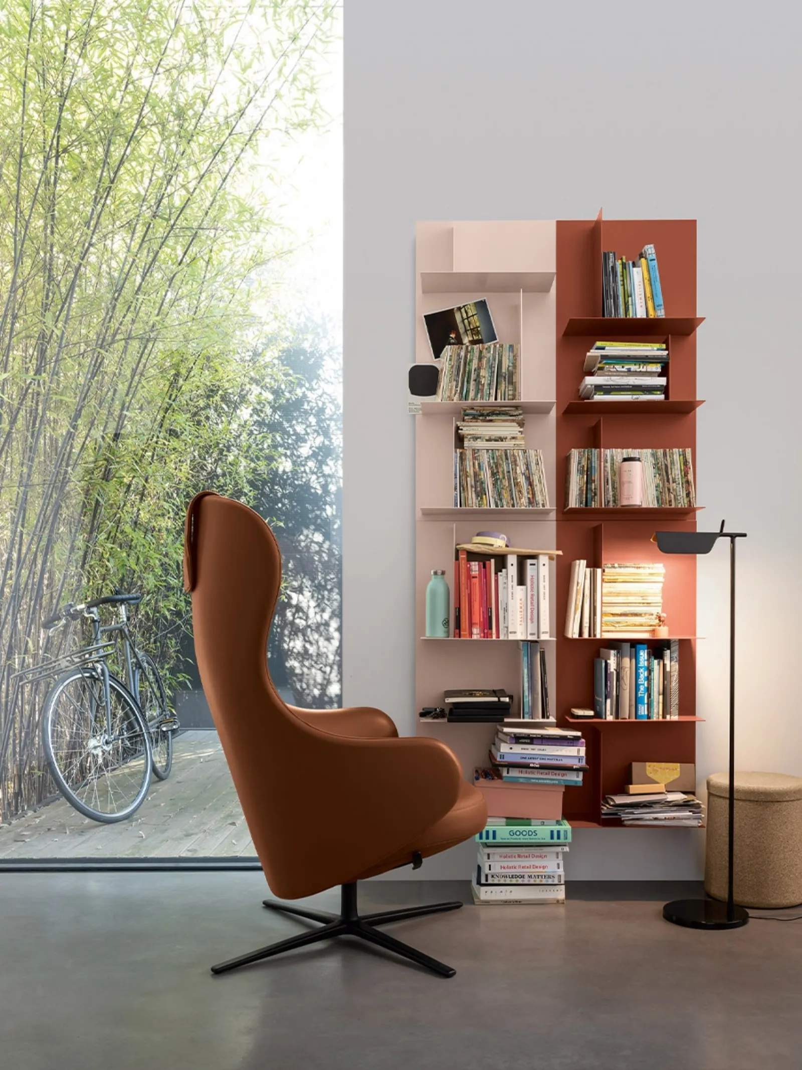 Precious materials and bold lines: discover the suspended Avenue Library by Kristalia among the most beautiful modular design libraries.