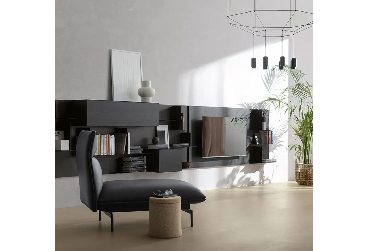 The well-known and renowned brand produces modular design bookcases in a wide range of shapes, sizes, solutions, and shades to ensure maximum versatility. By turning to our designers, you can get information of all kinds about the Kristalia Avenue suspended bookcase seen here. Discover the most exclusive space-saving solutions, such as the metal bookcase in the image, and create the practical and dynamic living room you've always wanted. You can use these furniture pieces as a multifunctional support surface to store both everyday items and decorative items.