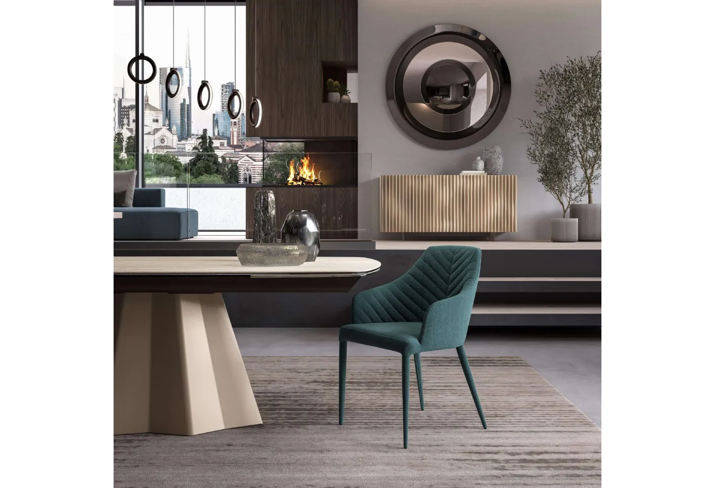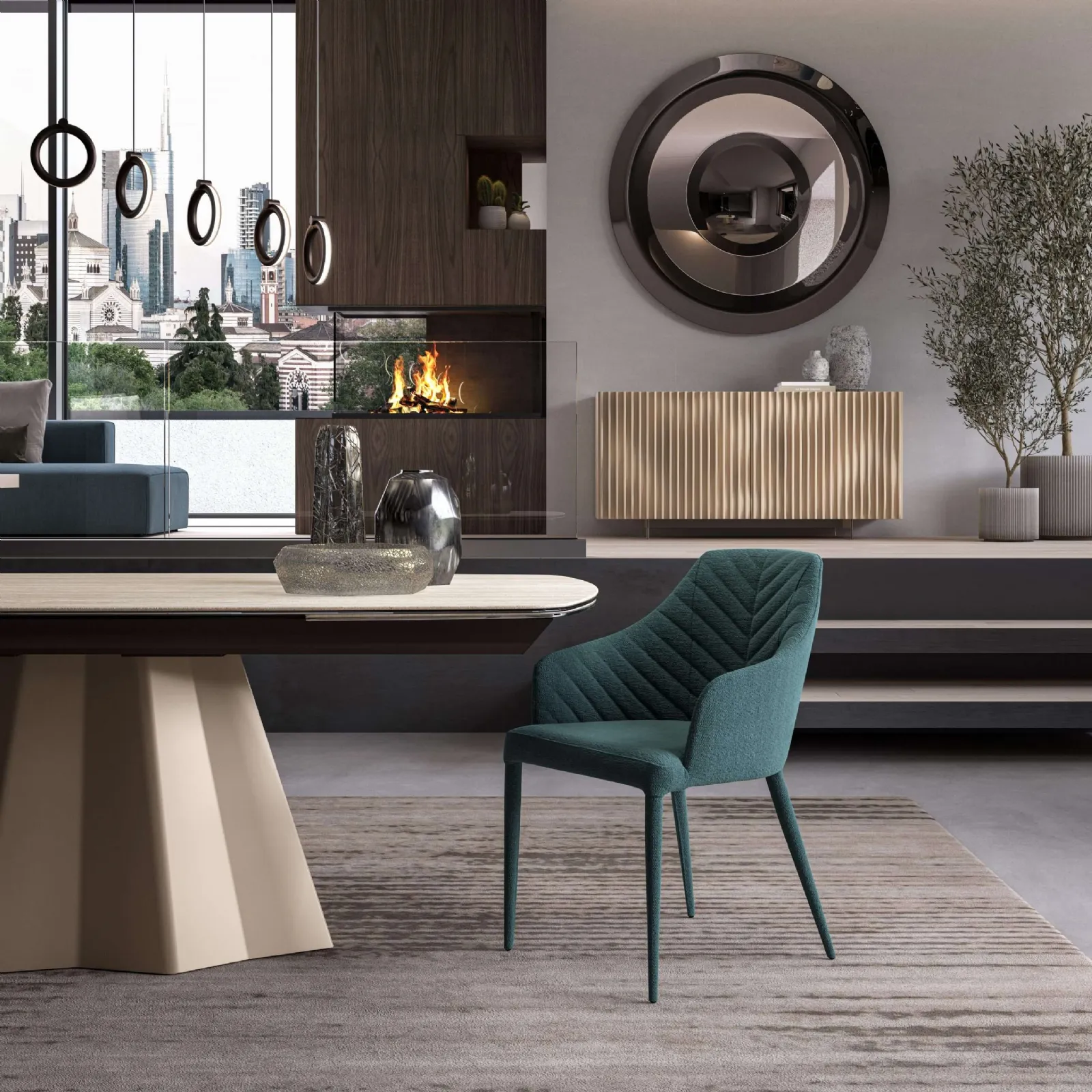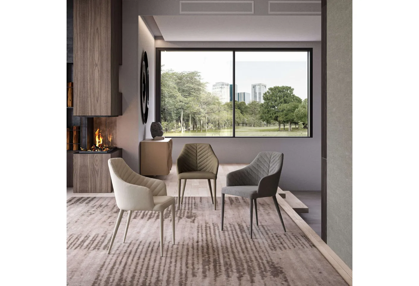 Contact us to learn more about the Ozzio Regiorgio chair model shown in the photo. In addition to fulfilling an essential role, these furniture pieces manage to emphasize even a anonymous and devoid of accessories environment. In our store, we offer exclusive furniture and accessories, including the perfect solution for you. Among the best brands available at our Home Furnishings store, you will find the most original fixed dining chairs on the market. A fabric chair like the one shown here decorates a living room or kitchen with great design, completing the spaces and enhancing them fully. Modern chairs, whether in wood or upholstered, are complex furnishings characterized by an almost infinite choice of colors, shapes, and patterns.
