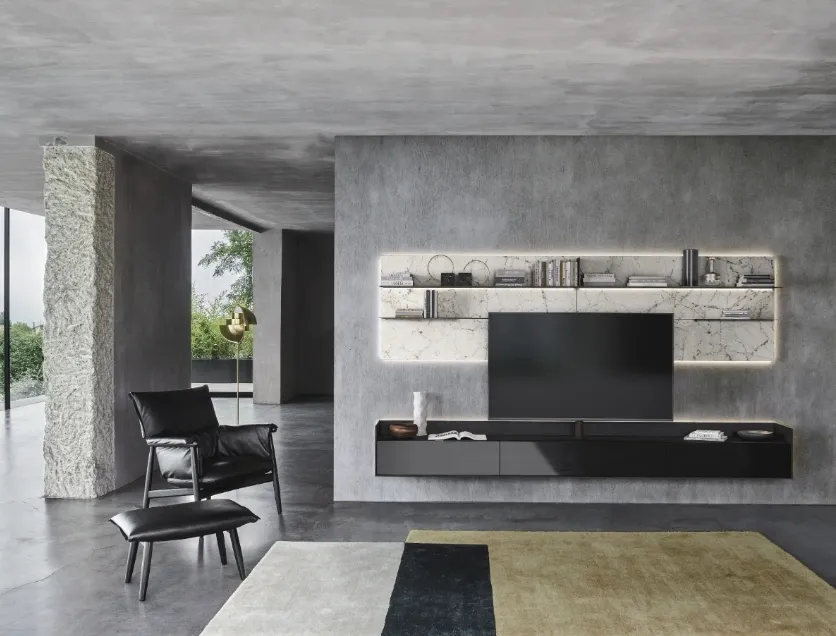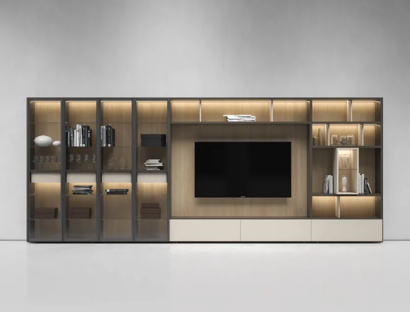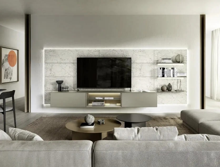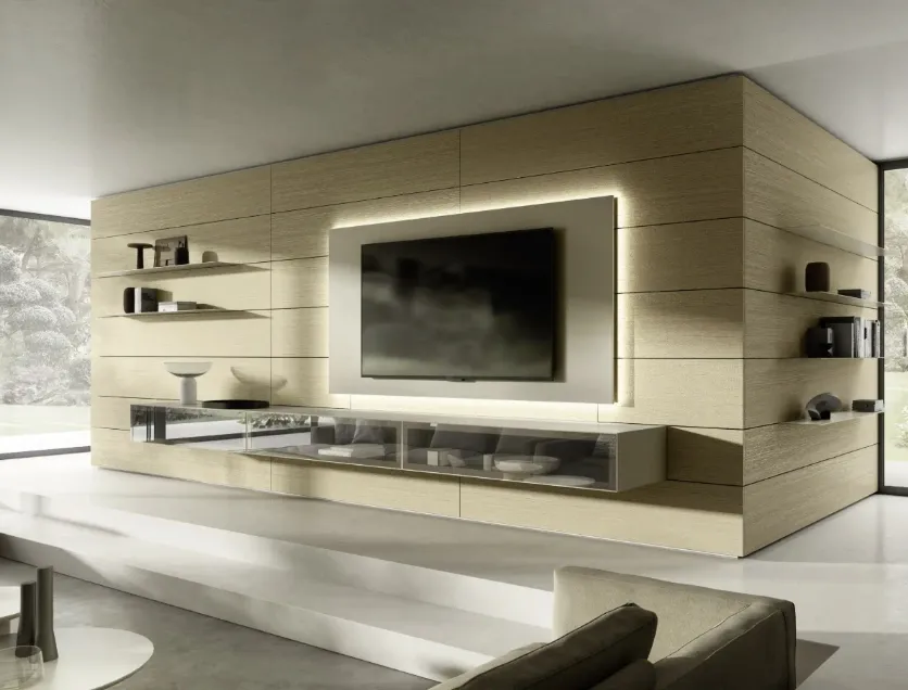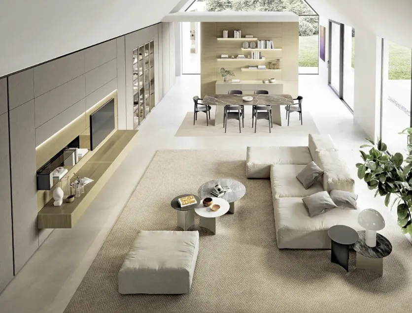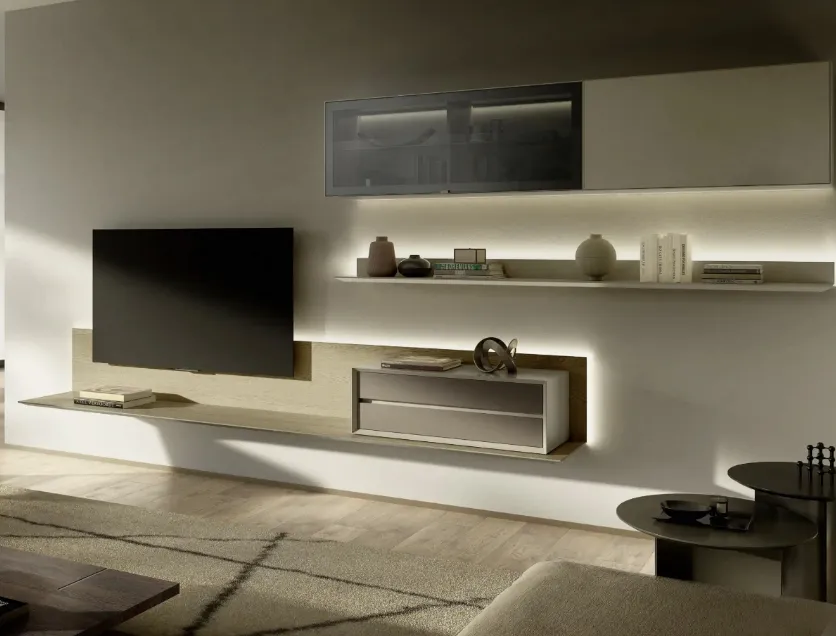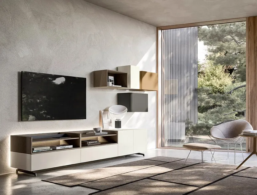 Given that the living room, par excellence, the room dedicated to activities such as relaxation, hospitality and work, must be a beautiful place to see, comfortable and equipped with practicality. Together with us, decide how to plan the living room of your dreams: with our Walls of great charm, on the ground or suspended if the space is not generous, you will optimize the available spaces by embellishing them. Keeping in view or containing books and objects of all kinds is not the only task of the Equipped Walls, in fact they contribute to enhancing the room according to a peculiar idea of style, which meets your expectations. When we select the sizes, materials and colors for our equipped walls, it is necessary to establish which style idea to refer to and take into account which functions the living room will respond to. The living rooms are the vital center of each home, therefore the choice of the furniture to be set up inside them to ensure total livability, lots of comfort and great welcoming qualities. The living center of domestic life, a place of hospitality and at the same time of daily relaxation, where you will often host family and friends for pleasant moments in company, for parties and lunches.