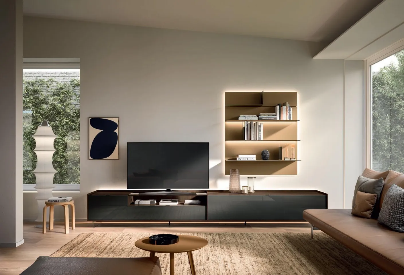 Sangiacomo offers innovative living room furniture models in its catalog, different in style and shapes, textures and components: discover in store the best brands' Home Furnishing. Since the living room must be a well-organized and beautiful space, some beautiful and practical furniture such as Wall Units are necessary. The Cabaret Glass Wall Unit by Sangiacomo in the photo is one of the most beautiful furnishing solutions on the market: great modular capabilities and different design opportunities make it beautiful and functional. Let yourself be intrigued by a wide range of furniture for the living area and you will find the wall unit that suits you. Modern glass living room furniture like the model in the photo are truly eclectic and capable of furnishing the living room optimizing every corner.