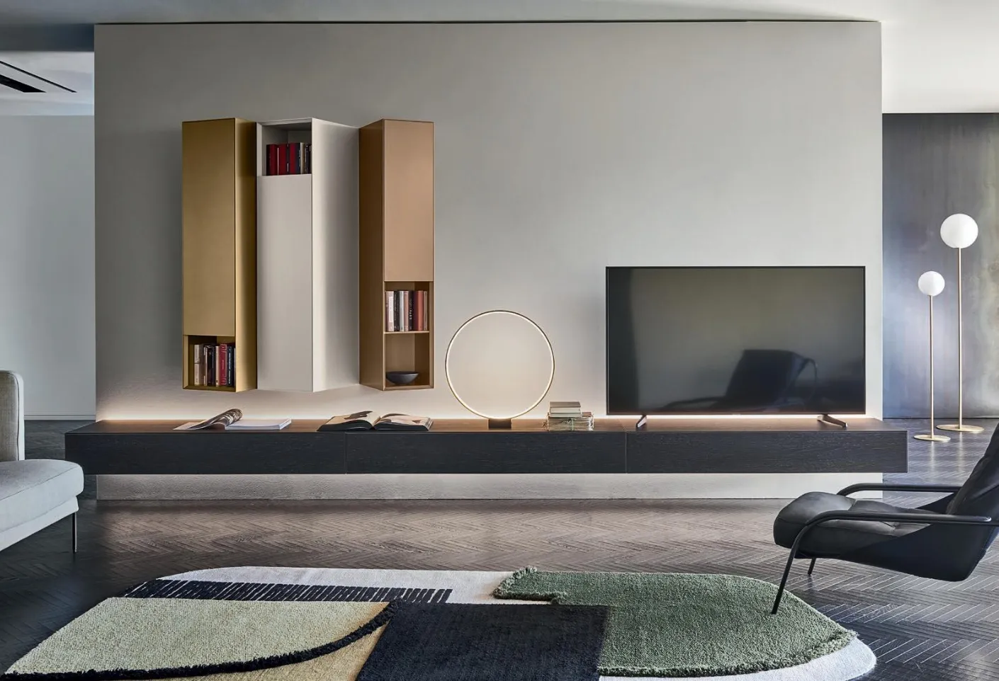 Modern fitted walls allow you to create different settings in the living room, freeing up space and enhancing every corner.