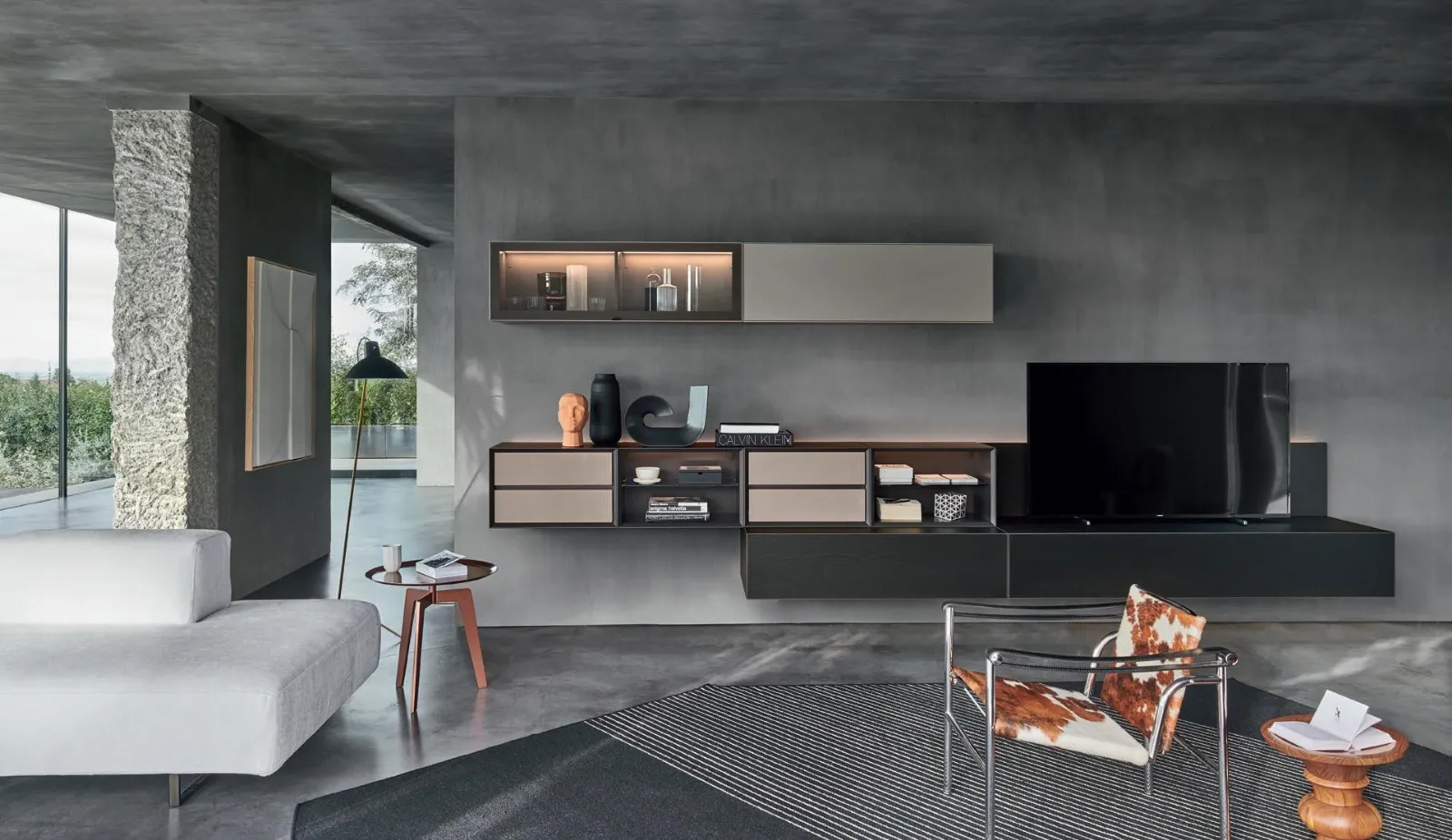 Part libraries, part containers and displays: Fitted Walls are ideal for optimizing an operational and practical space. This model embodies all the quality that the brand ensures, thanks to years of professionalism and great passion in the furniture and design sector. Even in a fairly small living room, this type of furniture manages to optimize spaces by making good use of every corner and ensuring great modularity typical of modern solutions. If you are looking for space-saving furnishings that can be customized for you, contact us and get information on the best manufacturers' Home Furnishings. The Domino 05 Fitted Wall by Sangiacomo in the photo, with a matte lacquered finish, meets the most personal housing needs of style and space without sacrificing stylistic research.