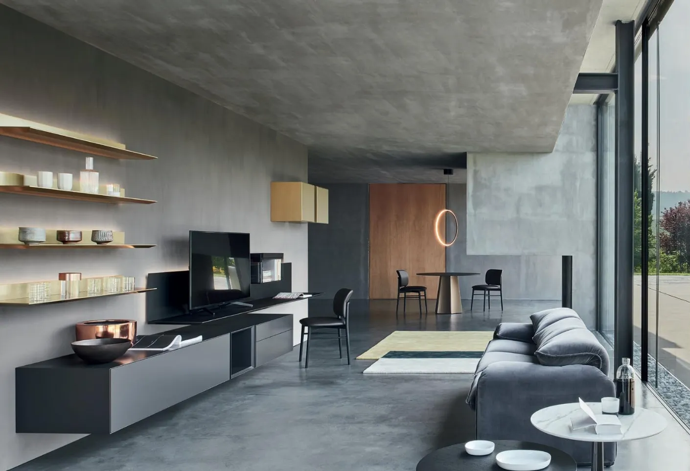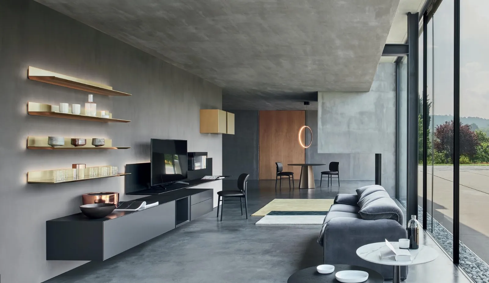 A bit of libraries, a bit of storage furniture and displays: Wall Units are ideal for organizing a dynamic and operational space. If you are looking for space-saving and customizable furniture, contact us and get information on the best Home Furnishings brands. This solution represents all the excellence that the brand ensures thanks to years of experience and great passion in the field of furniture and design. Even in a not too large living room, this type of furniture manages to organize spaces effectively, making the most of every corner and guaranteeing the high modularity typical of modern solutions. The Domino 06 Wall Unit by Sangiacomo in the image, with a matte lacquered finish, solves the most personal housing needs in terms of style and space without compromising on aesthetic research.