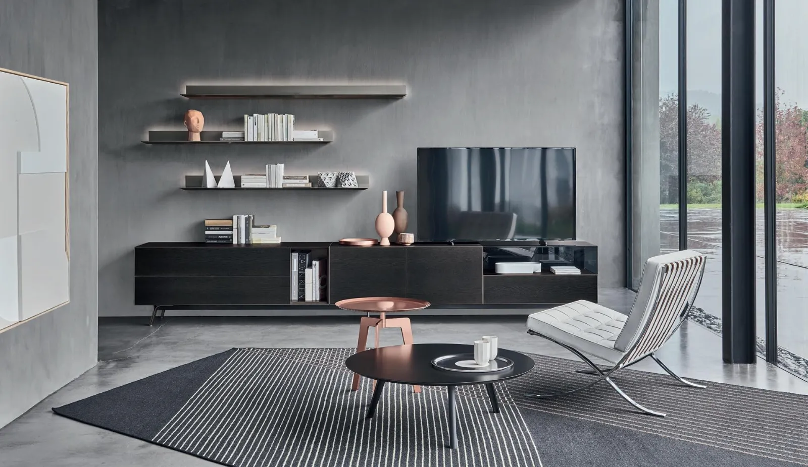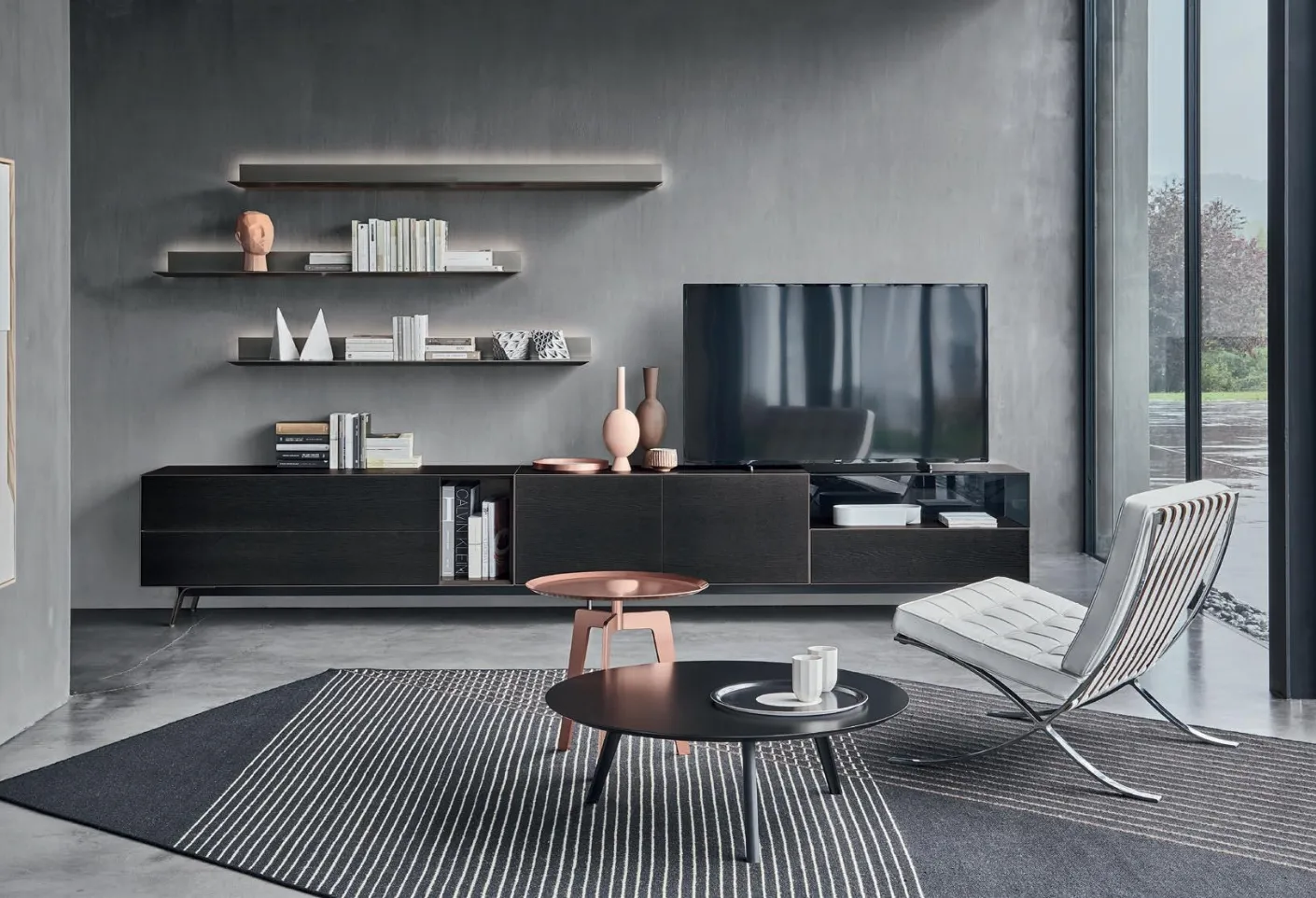 Modern fitted walls allow you to recreate different atmospheres in the living room, freeing up space and making the most of every corner.