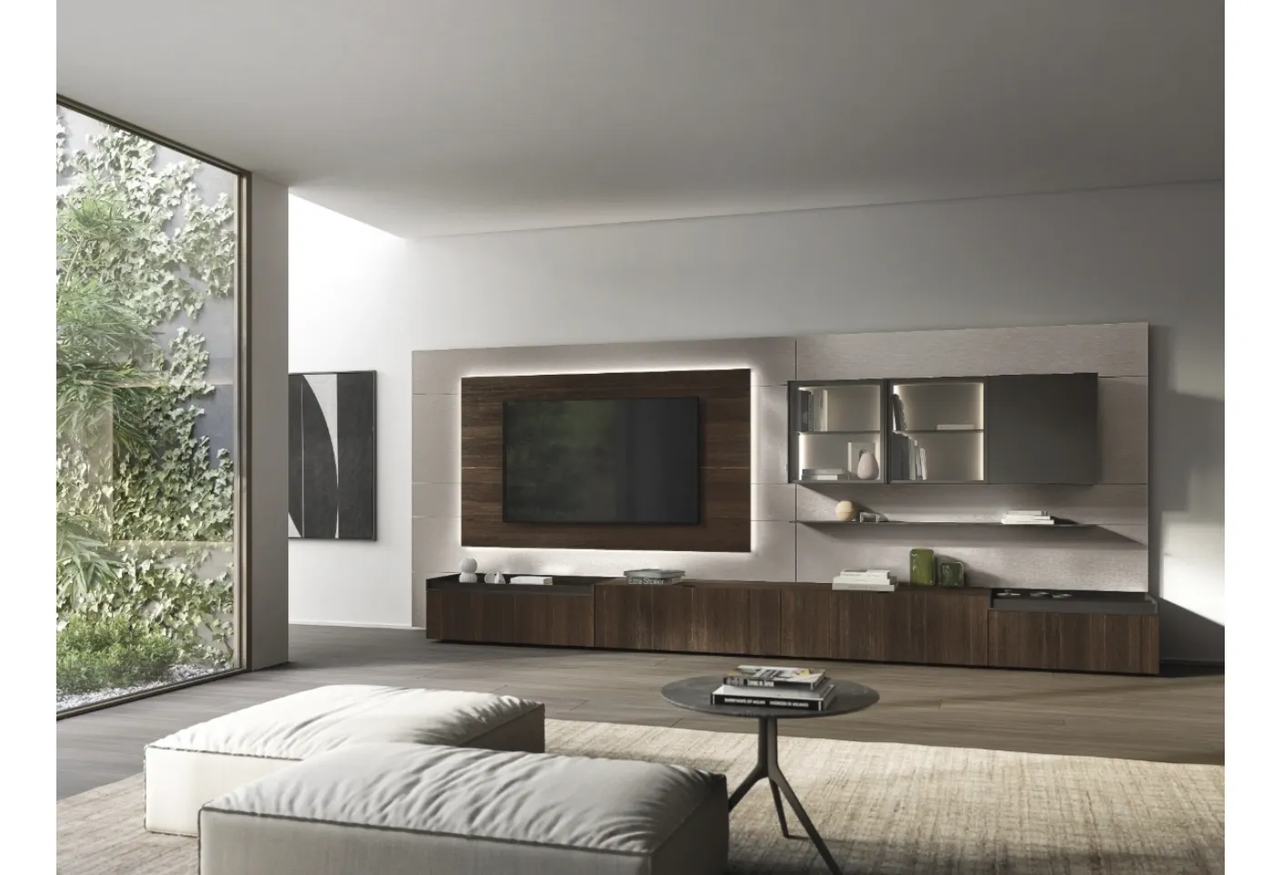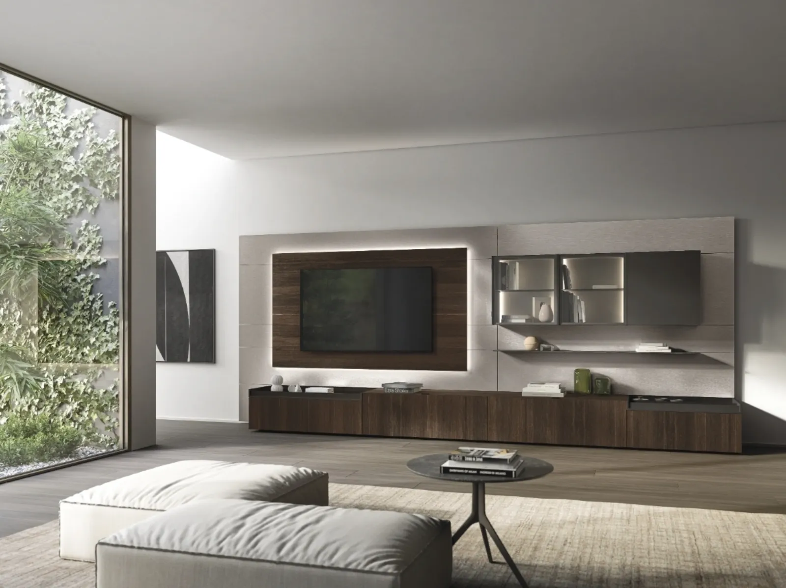 Equipped walls and living room furniture by Sangiacomo: click and discover the Lampo 014 model and you will be able to enhance modern rooms of all kinds.