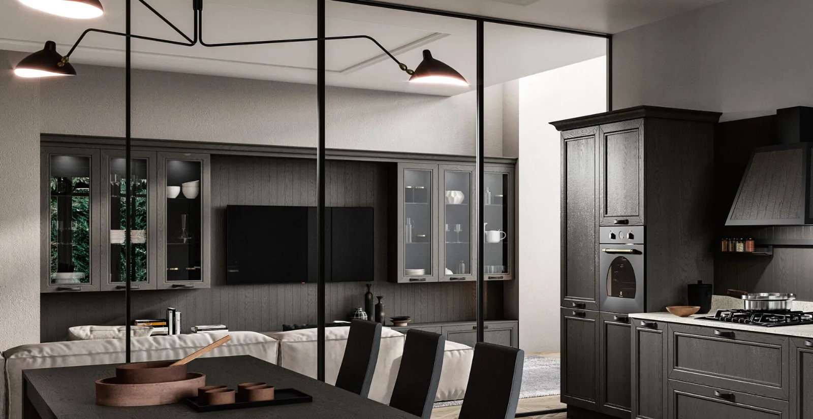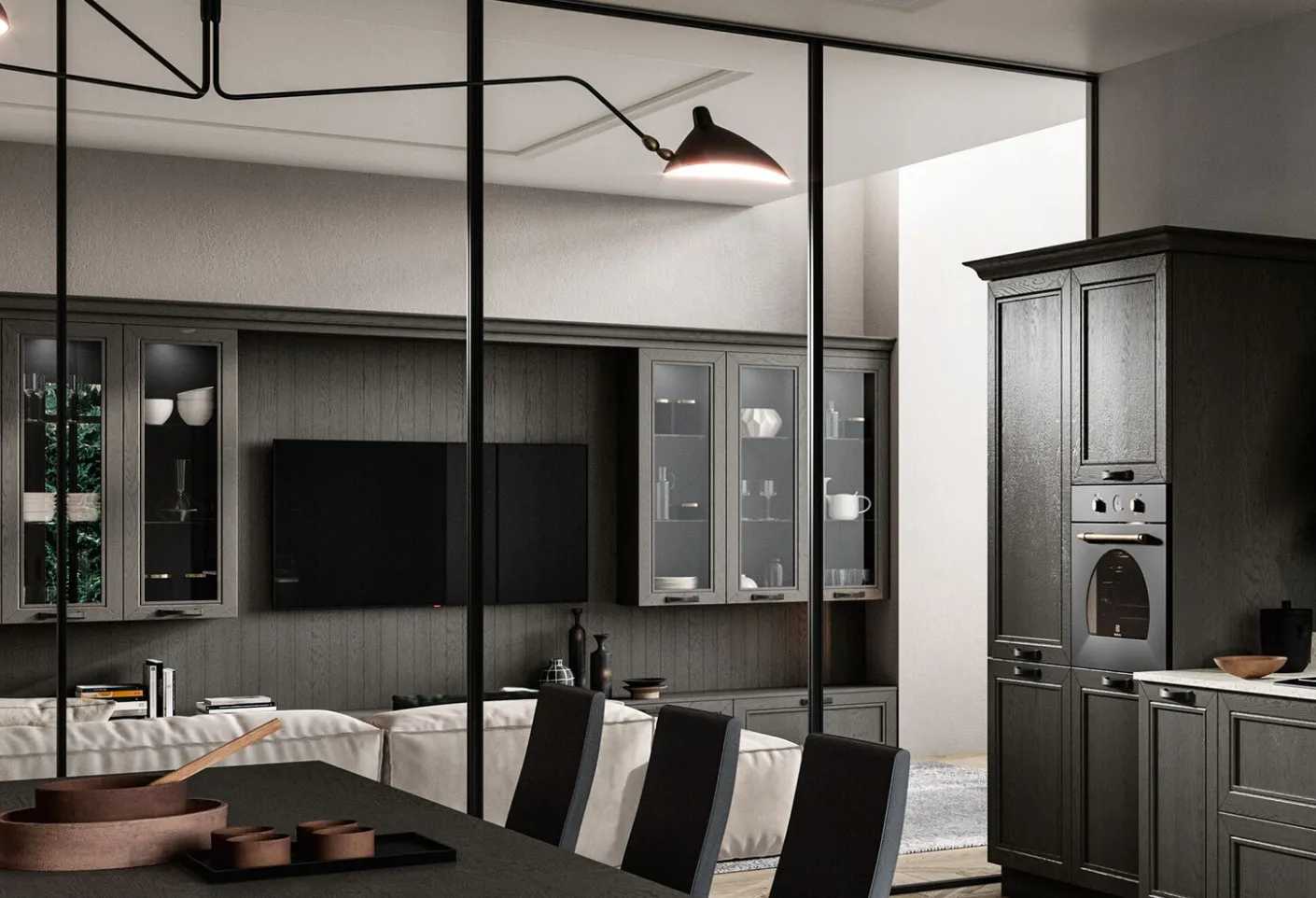 Enrich your interiors with classic Wall Units from Arredo3: in our store you will find furniture and design accessories made of top quality materials and from the best brands. Whether mounted on the wall or placed in the center of the room to optimize an open space, the most beautiful furnishing compositions on the market furnish the living area while optimizing the available space. The Arredo3 Opera Living Wall Unit in the picture has great modularity and different customization possibilities: discover the wall unit shown here and contact us for more information and quotes.