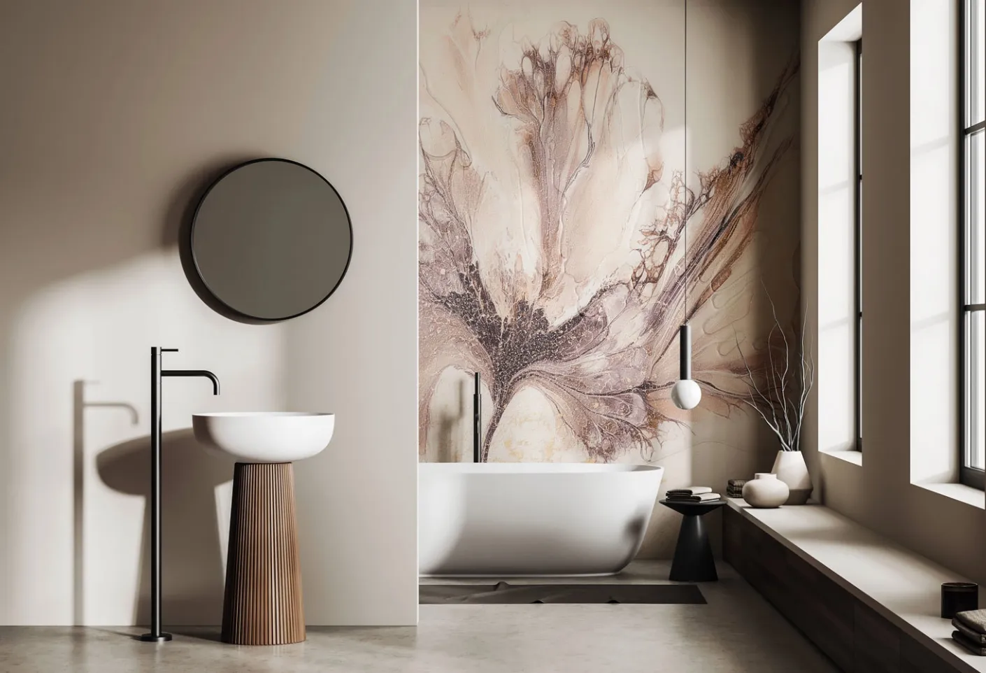 The wallpaper is the perfect purchase to complete your interiors! Finish off a designer setting with the Aqueous Bloom pattern from London Art.
