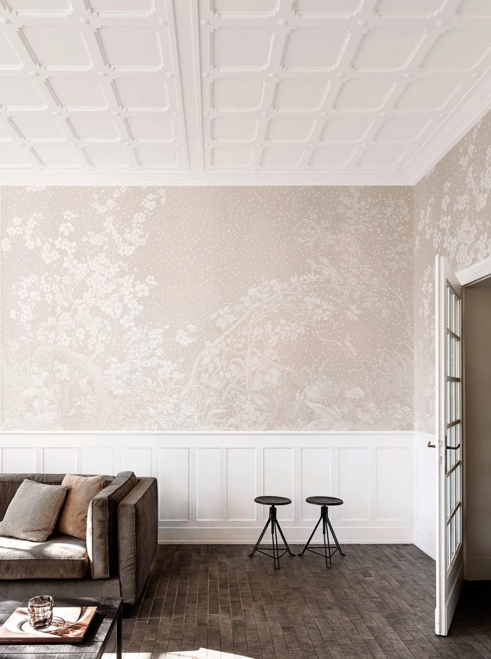 The wallpaper is the optimal solution to complete your rooms! Achieve a modern setting with the Hiyoku model by London Art.