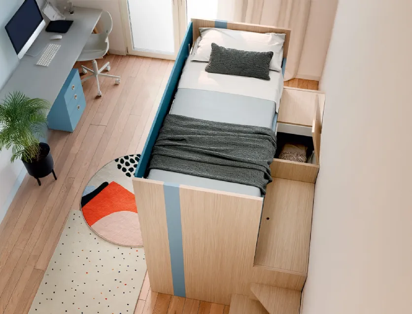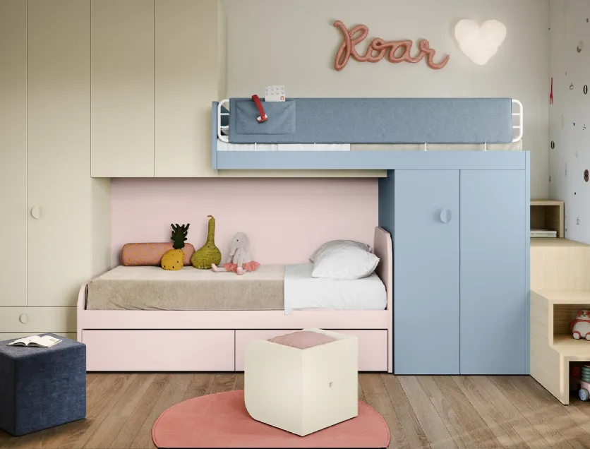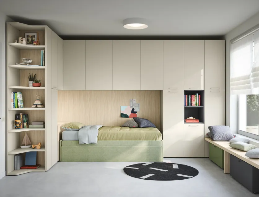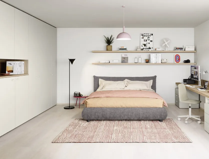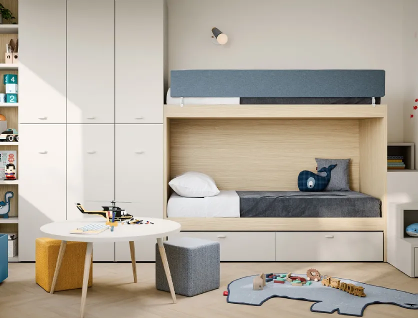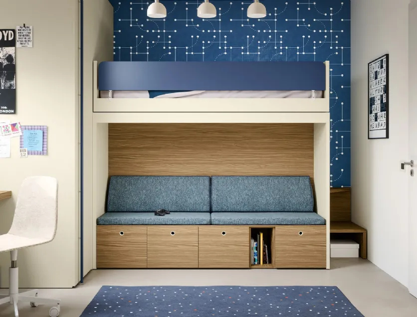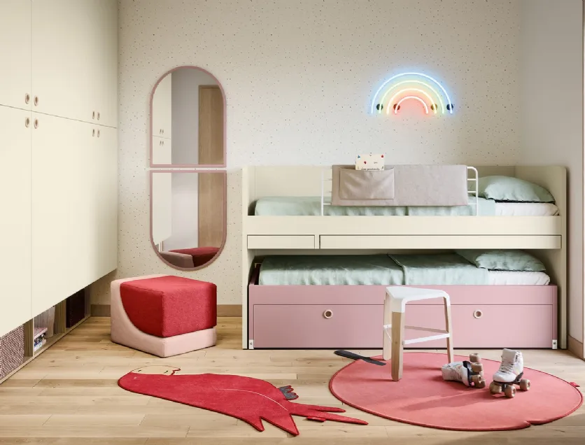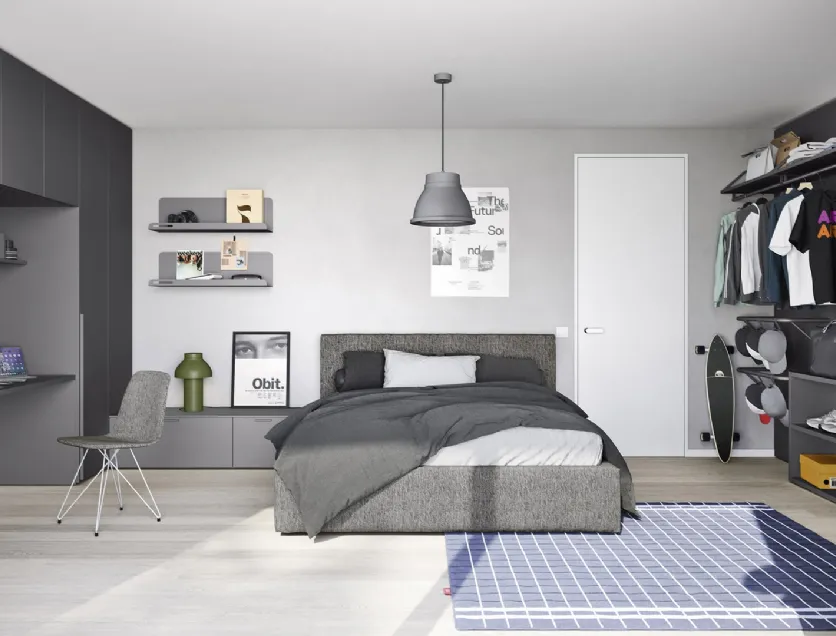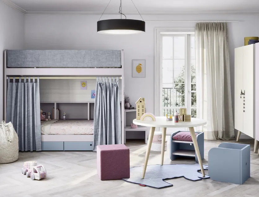 Depending on the individual needs, the size, the conformation and the style of the bedroom, you will decide how to place the bed system, work table, bedside tables, chairs and wardrobe, enhancing the spaces. Different functions coexist in this environment: leisure, study and rest are just a few; the furnishings for the bedroom must offer practicality, safe materials and comfort. The most beautiful bedrooms with beds on the ground, bridge, bunk, with sliding beds as well as mezzanines, always suitable for children and teenagers and of great quality, await you in the shop. In a rich range of models and trendy materials available on the market, you will certainly find the perfect solution for the needs of your sons and daughters, combining well-studied lines with functional and ergonomic qualities. The furniture for the bedrooms, which consists of beds, wardrobes and bedside tables, supports your children as they grow up, satisfying needs that evolve over the years and instilling energy and positivity. The bedrooms are the place where our children will spend the important years of their life, having fun and sleeping, in fact it must be a perfectly furnished, easy and safe space.