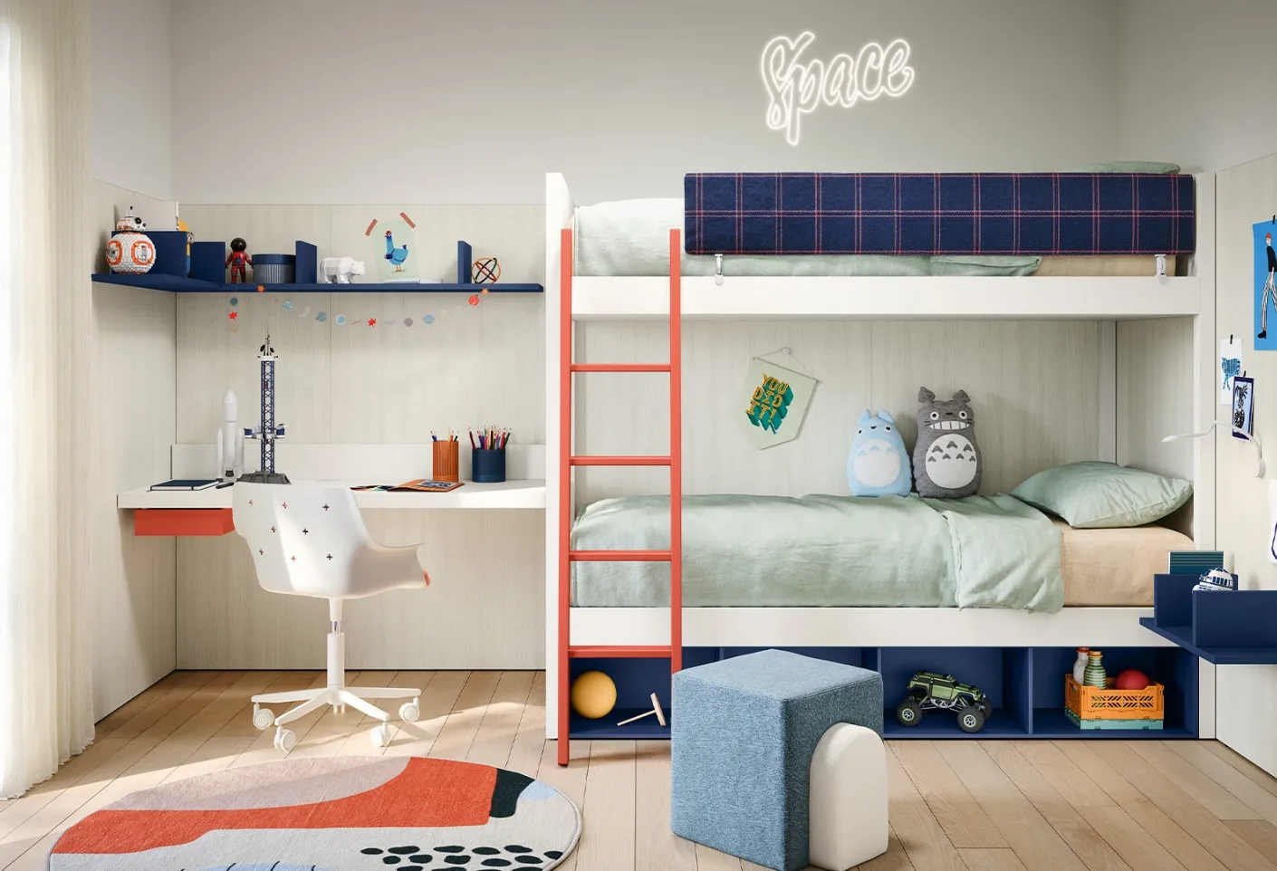 To decorate children's rooms in the best way, Nidi offers versatile and well-designed solutions: there are various activities that your children carry out there. Visiting us means seeing firsthand all the most beautiful solutions for children with bunk beds in melamine that we offer in our store. With the Camelot bunk bed children's room by Nidi, you will make your children's room a truly livable and safe interior that will grow with them. This proposal with a melamine finish, among those with bunk beds for children by Nidi, meets the needs of adults and the tastes of young people.