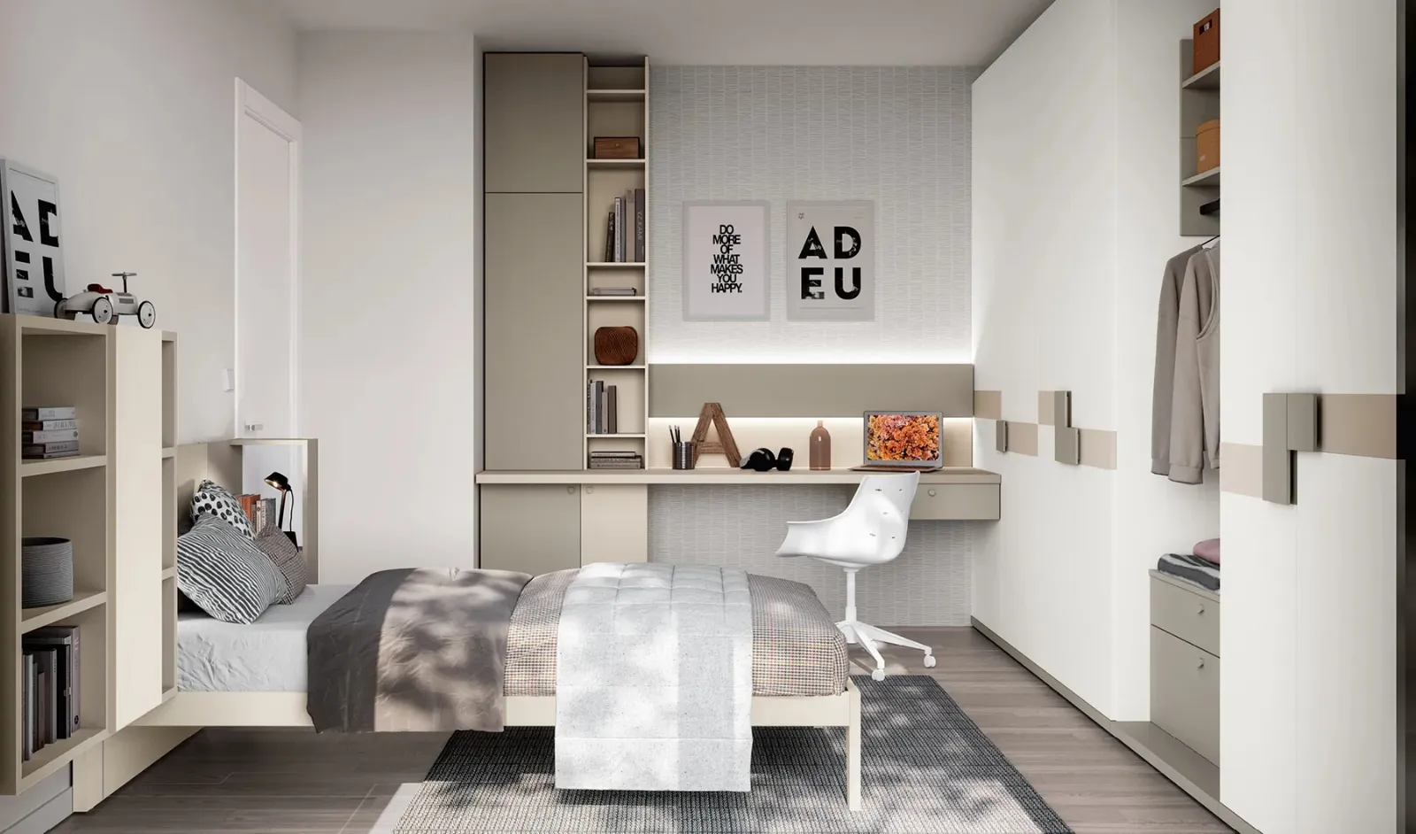 The customized children's bedrooms of the well-known and renowned brand are available in different versions, always meeting the needs of children. Discover in the store the Layout 02A Children's Bedroom by Doimo Cityline in matte lacquer: it is ideal for recreating a comfortable, beautiful, and well-organized environment. Durable materials and non-toxic paints characterize the brand's offerings, including the modern customized options ideal for you. If the room is small, Doimo Cityline offers diversified solutions that always combine functionality and ergonomics. The accessories available for Doimo Cityline's customized children's bedrooms are always customizable, to avoid any space and functionality difficulties.