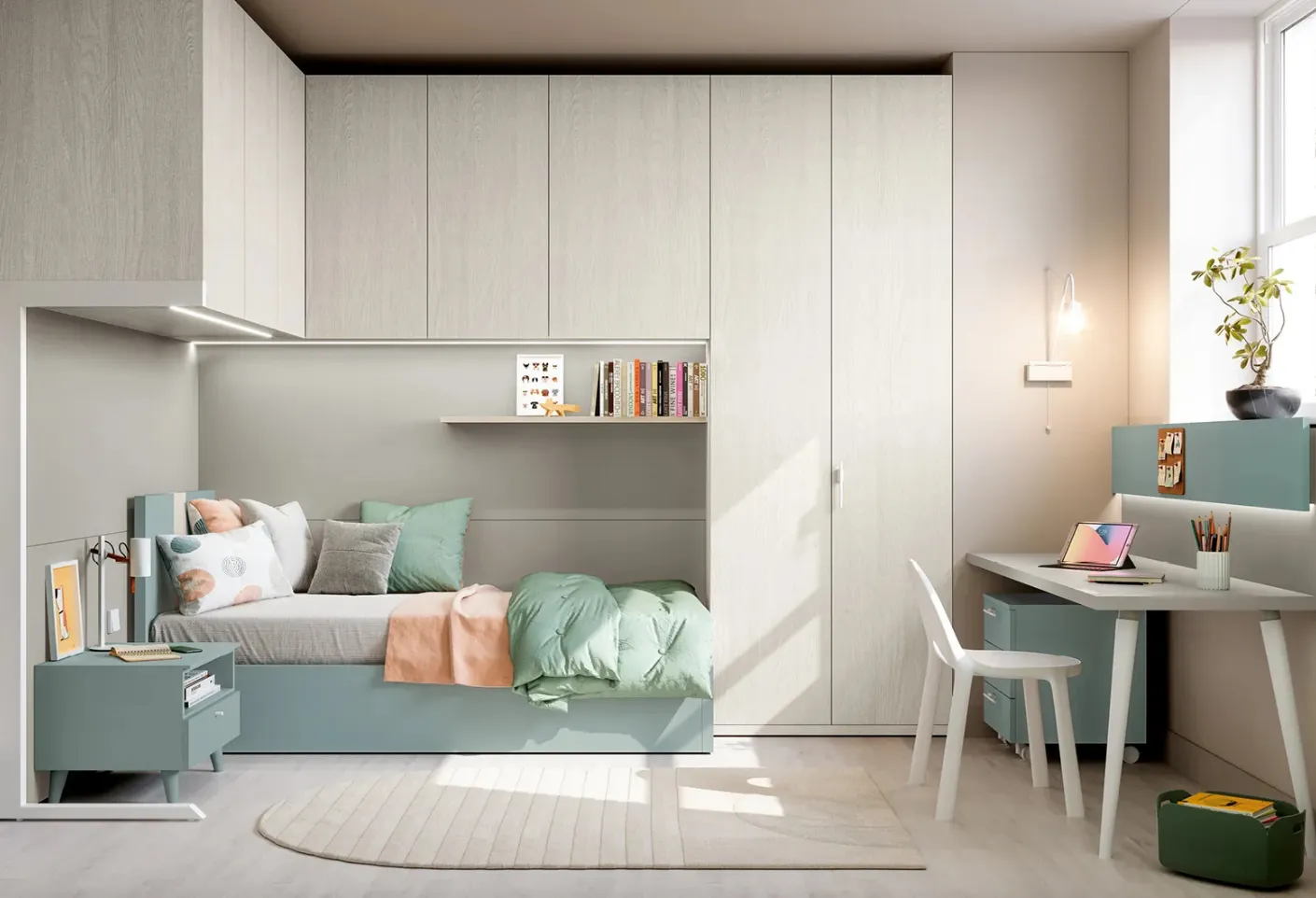 With a Doimo Cityline furnishing composition, you can effectively and stylishly complete the environment where your children spend the most important years of their lives. Doimo Cityline satisfies both children's style and parents' needs with its modern bridge bedrooms, perfect for all kinds of requirements. On-trend colors and specially crafted designs characterize the most original offerings from the well-known brand that we showcase in our showroom. The Layout 03B bedroom from Doimo Cityline in matte lacquer is a complex universe to be decorated with care, combining various customized accessories. Come to our showroom and you can personally view all the most original modern bridge furnishing compositions from Doimo Cityline for the younger generation.