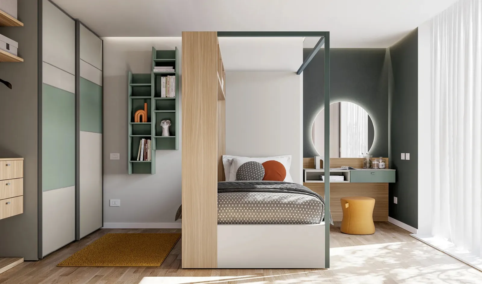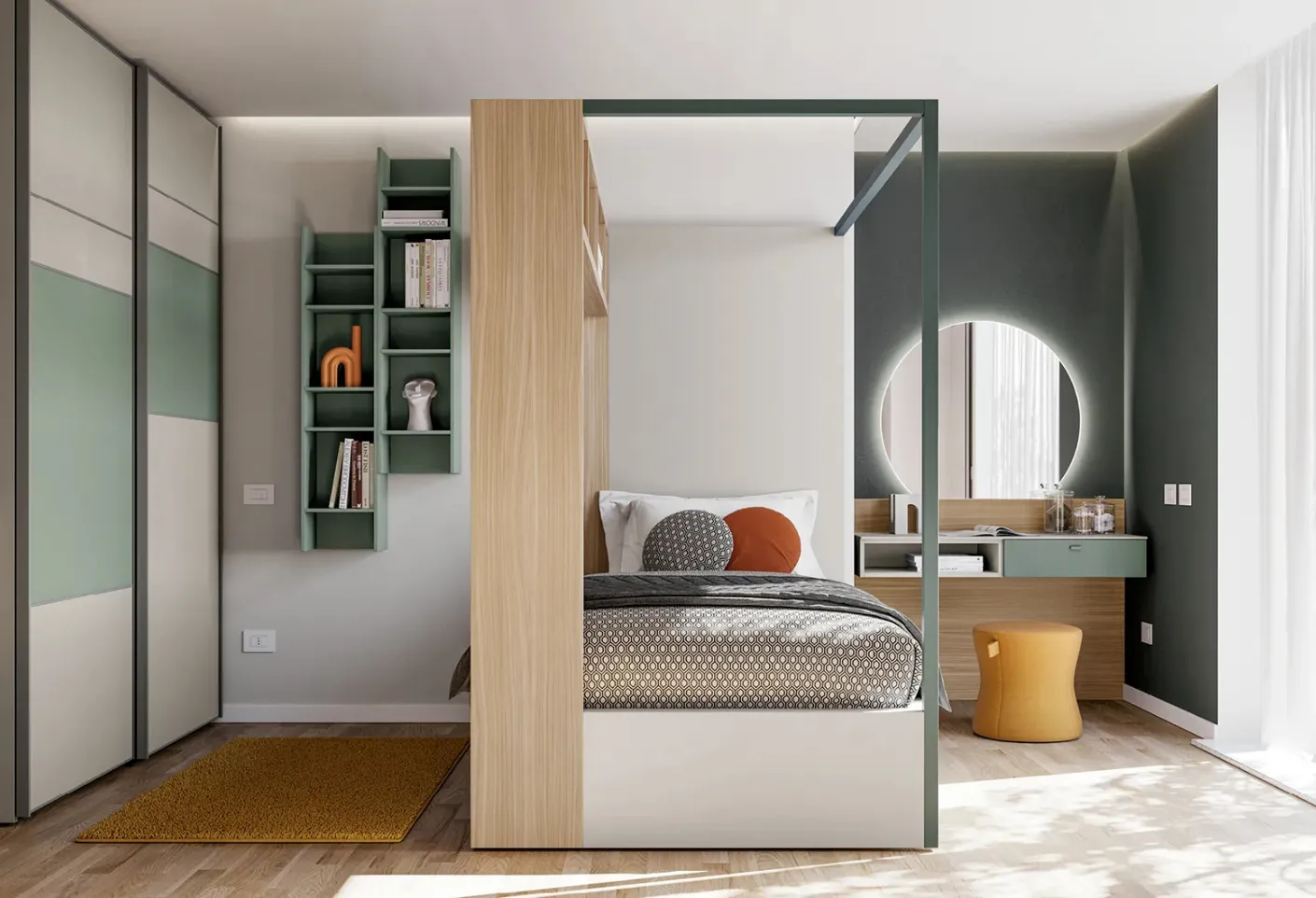 The well-known brand offers various design solutions, turning the kids' room into a space where they can grow up and dream. This solution with a matt lacquered finish, among the tailored options for children by Doimo Cityline, meets the requests of adults and the tastes of children. Visiting us means seeing all the most beautiful tailored solutions in matt lacquer for children that we present in our showroom. With the Layout 04A Kids Room by Doimo Cityline, you will make your children's room a truly comfortable and safe place that will accompany them as they grow up. To decorate the Kids Rooms perfectly, Doimo Cityline offers design solutions that are multifunctional: there are numerous activities that your children do there.