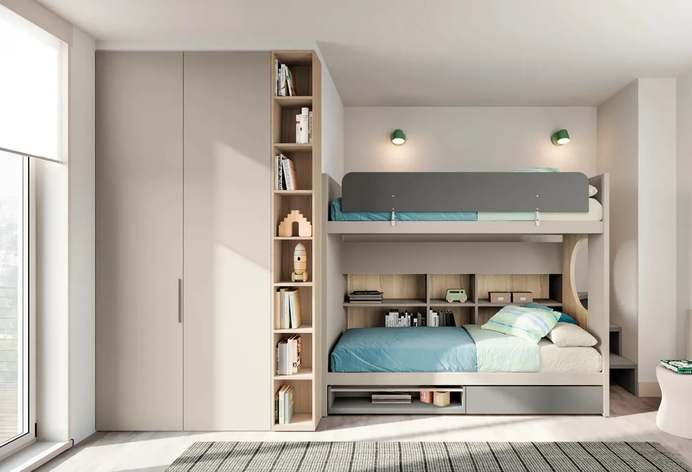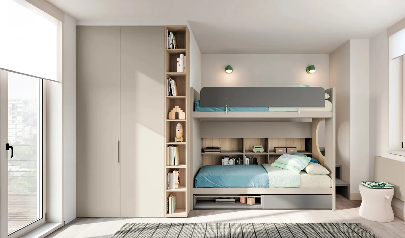 Our children spend a great part of the day in their bedrooms: make them suitable for doing homework, having fun, and relaxing every day. Our children's bedrooms are the environment where they will grow up having fun and dreaming, so it is essential that the space is practical. In our store, we offer various modern bunk bed children's bedrooms from the brand, ideal for following them during their development. We take care of guiding you from choosing the furniture for the room to designing the place where your children will grow up, having fun and dreaming. With the Doimo Cityline Layout 11B matte lacquered children's bedroom, you will ensure a perfect balance of functionality and ergonomics, ideal for your children's room.