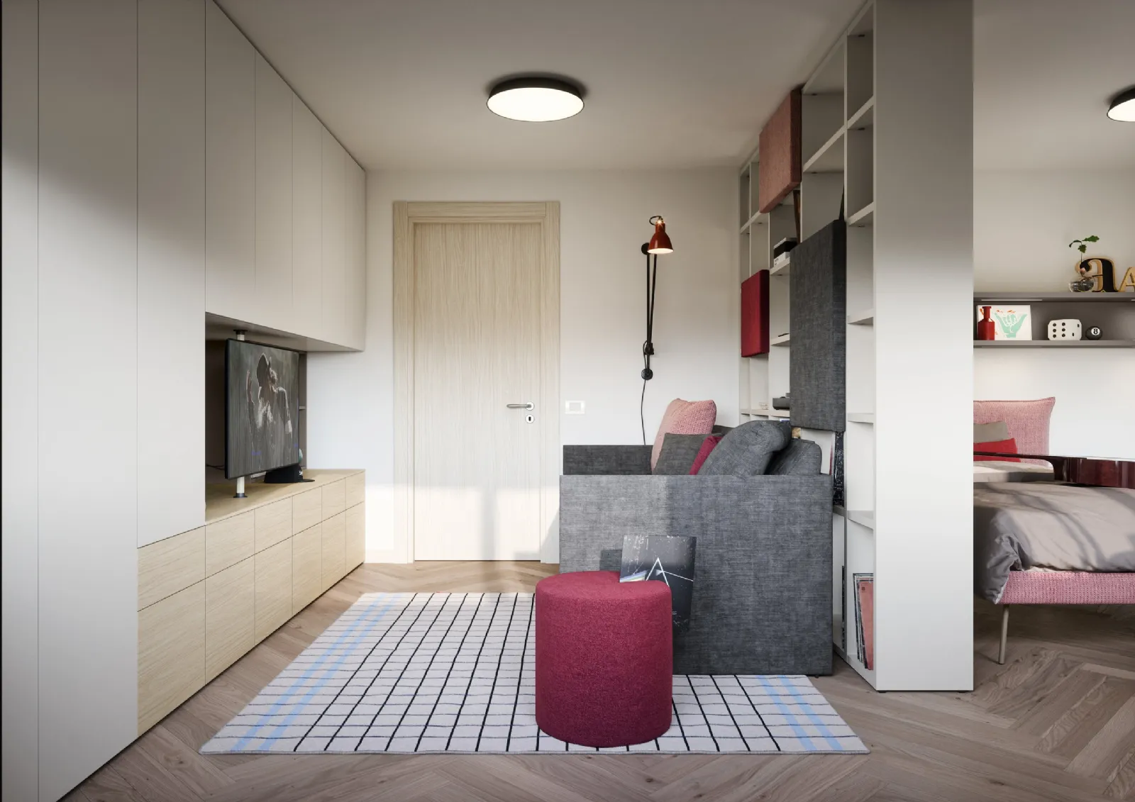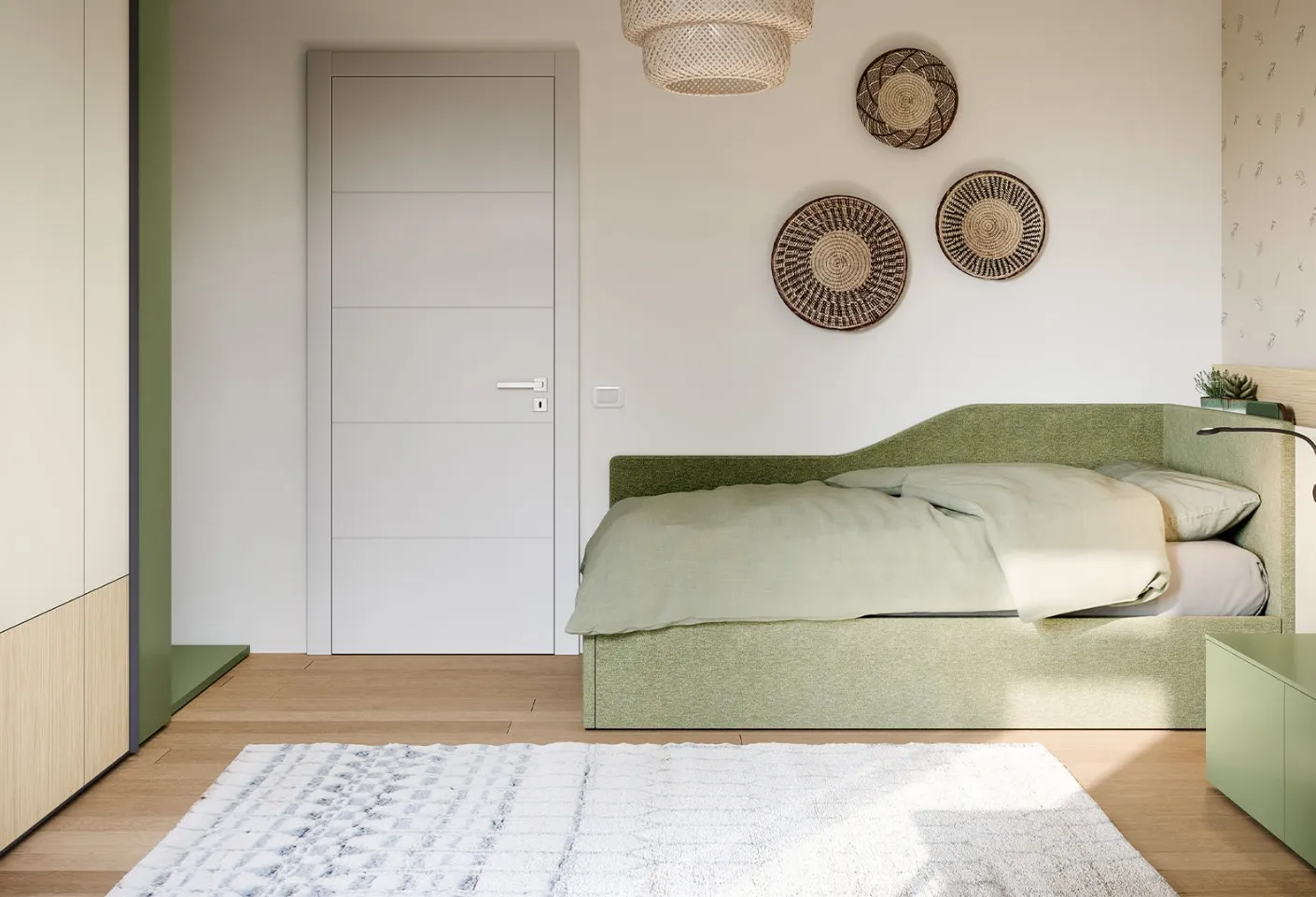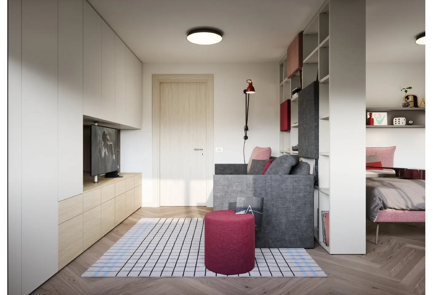 If you are looking for creative ideas to furnish your children's room optimally, we present the Sofa Bed Room by Nidi with a melamine finish. Bring aesthetics and vibrant colors into the room dedicated to the youngest with this solution, one of the modular bedrooms for boys by Nidi. Nidi offers a wide range of accessory elements to be custom matched: you will find a bed, wardrobe or walk-in closet, work desk, chairs, and bookcases. This melamine proposal optimally enhances the practical qualities and aesthetic value of the room, as it is able to combine ergonomics and safety.