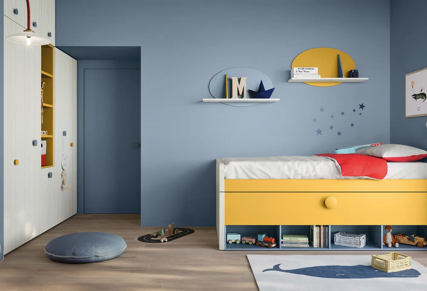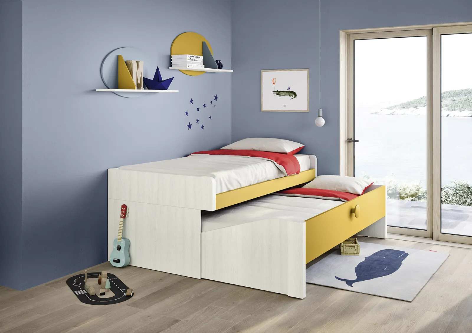 We present in our store various modern space-saving children's bedrooms from the brand, ideal for following them during their development. Our children's bedrooms are the place where they will spend their early years playing and dreaming, so it is essential that the space is practical. In our showroom, we take care of guiding you from choosing furniture for the room to designing the place where your children will grow up, playing and dreaming. With the Nidi Pablo space-saving bedroom set in melamine, you will ensure a perfect combination of ergonomics and safety, ideal for your children's room.