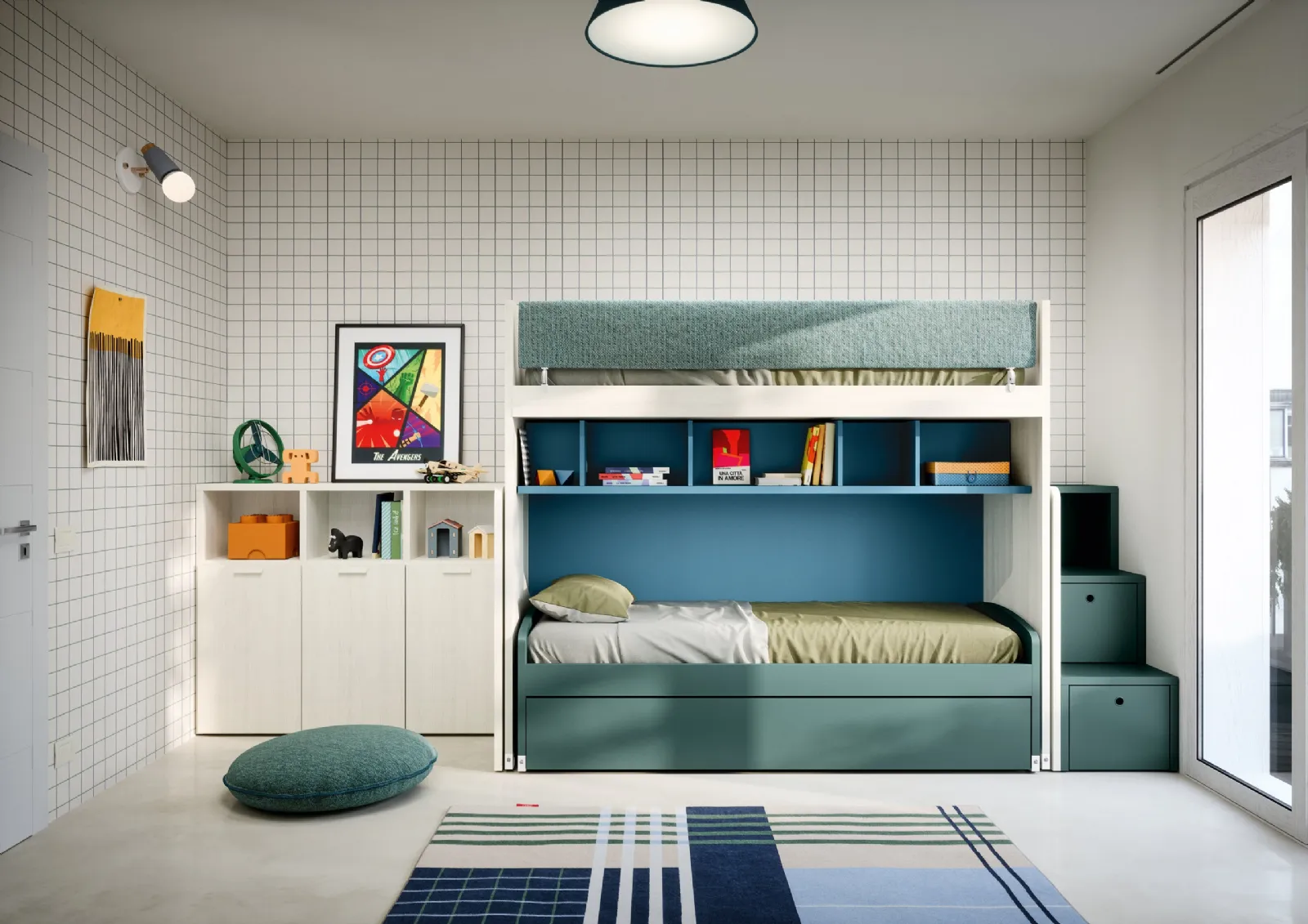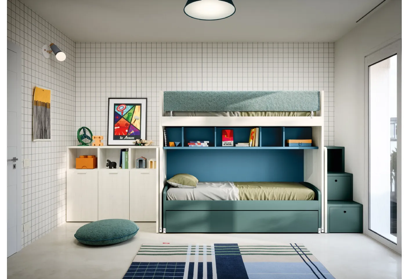 This proposal with melamine finish, among those loft beds for girls by Nidi, meets the needs of adults and the tastes of young people. Visiting us means experiencing first-hand all the most exclusive loft bed solutions for girls in melamine that we present in the store. With the Loft Bedroom with Pull-Out Beds by Nidi, you will make your children's room a truly comfortable and safe environment that will accompany them as they grow up. The renowned brand creates various modern solutions, so the bedroom will be a room where your children can grow up and rest.