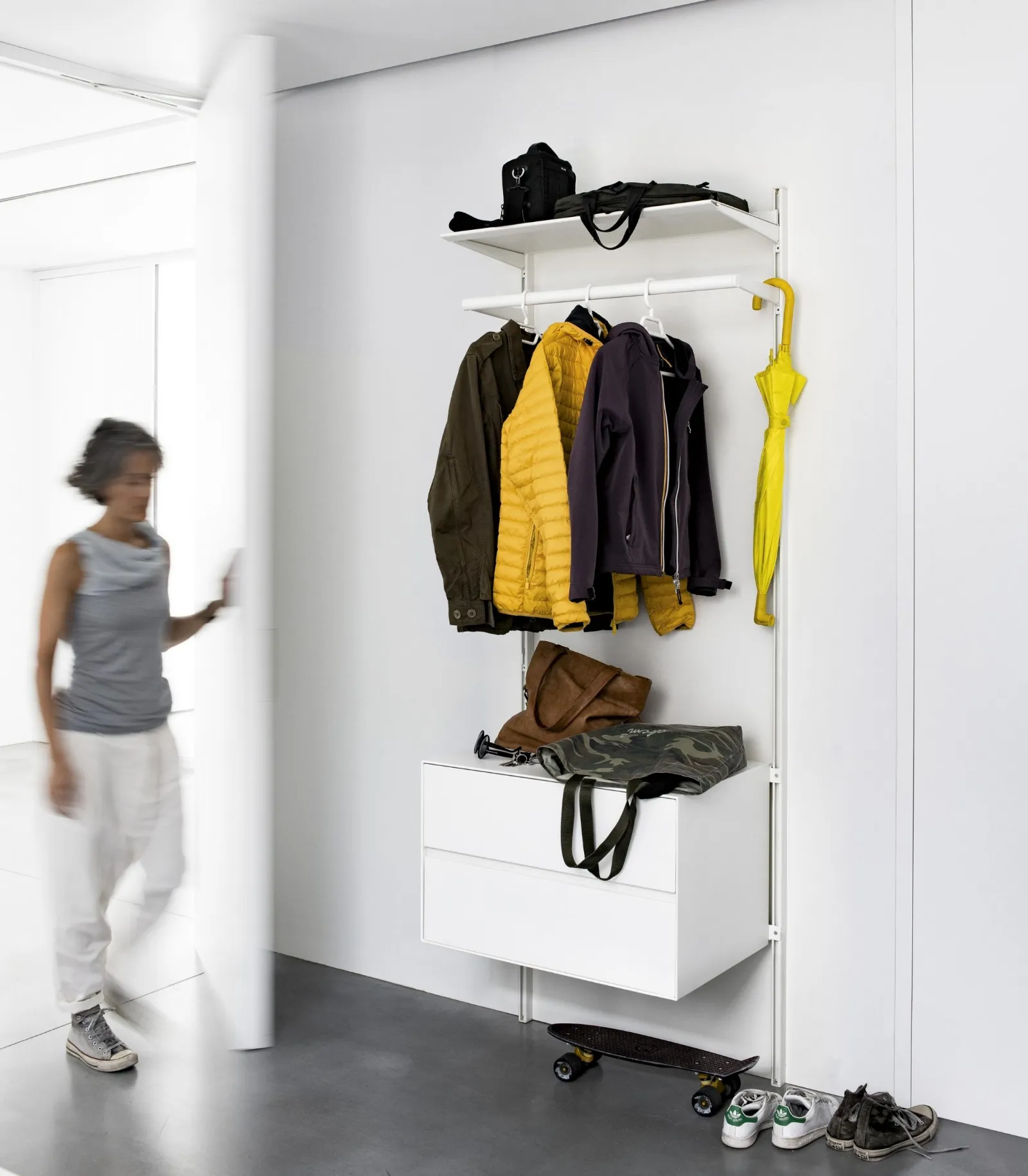 Click and read more on your mobile about Kristalia's Dot entryway! You can furnish modern spaces by organizing them efficiently.