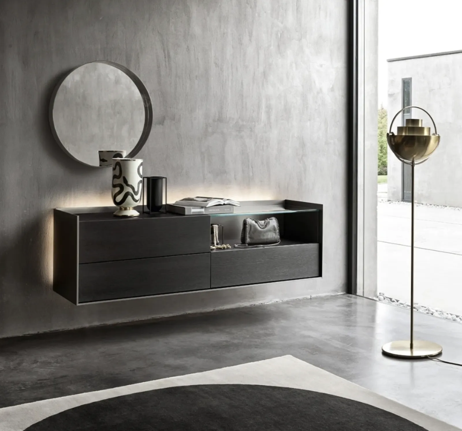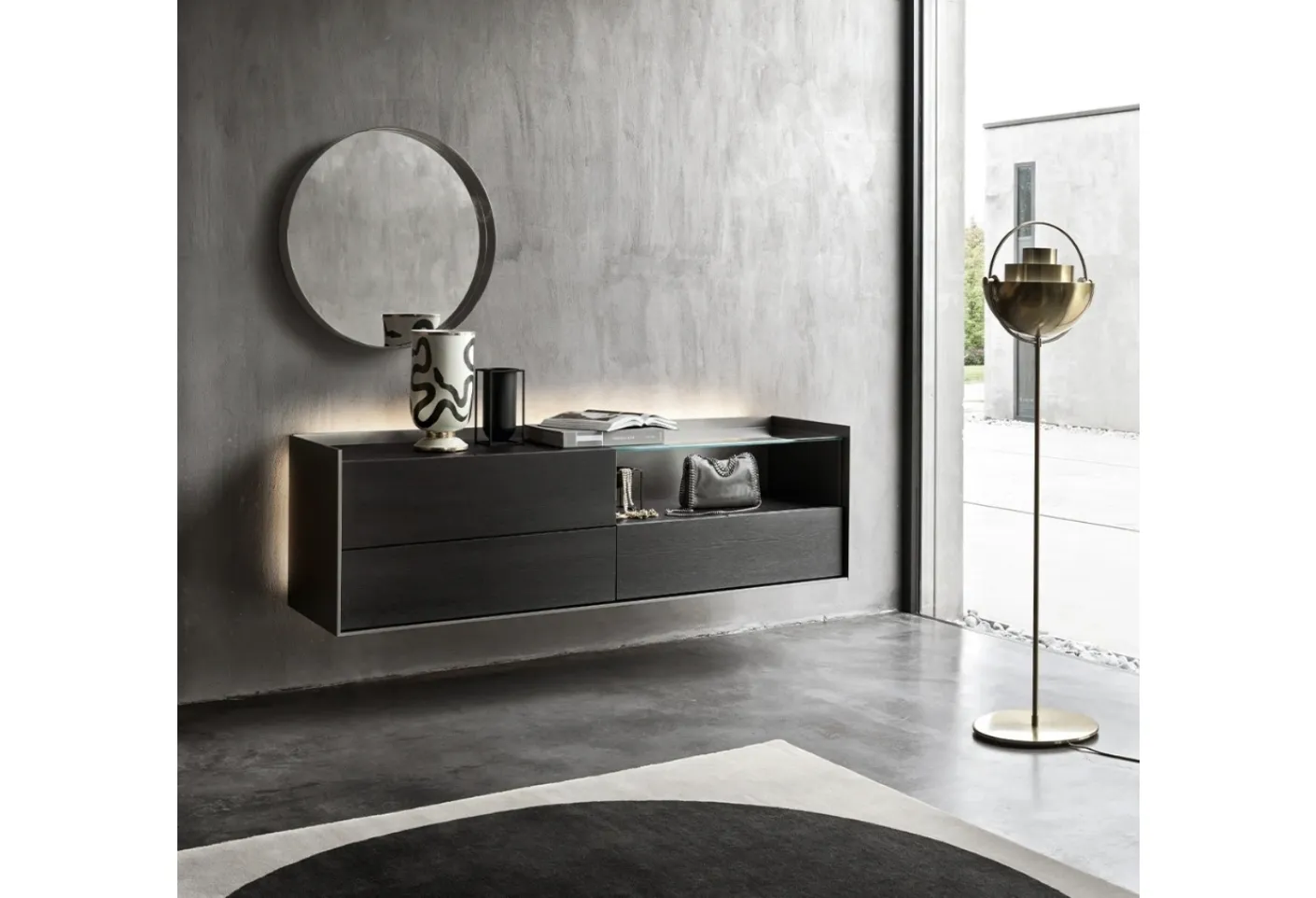 These hanging Cabaret Mobiles by Sangiacomo in wood are ideal for giving personality to the home with a touch of class and elegance, optimizing the available space. In addition to being multifunctional and practical, Sangiacomo's modern wooden wall-mounted furniture also has great aesthetic value, ideal for embellishing home spaces. The various components for furnishing the living room allow us to perfectly arrange our domestic environments, meeting our needs for practicality and aesthetics. This proposal guarantees plenty of space for organizing books, magazines, and assorted objects: the brand offers different compositions.