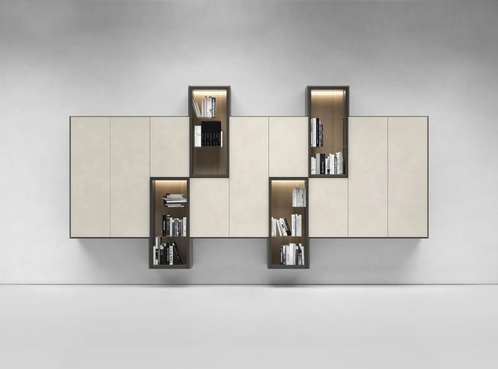 Living room furniture in melamine by the brand Presotto: click and discover the Pari & Dispari D model among the most beautiful solutions for the living room.