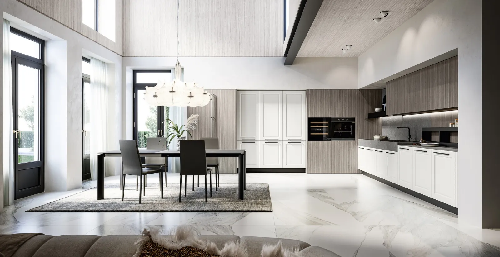 Choose the Asolo 02 kitchen: the classic Arredo3 solutions in matte lacquer are a guarantee of quality, style, and design.