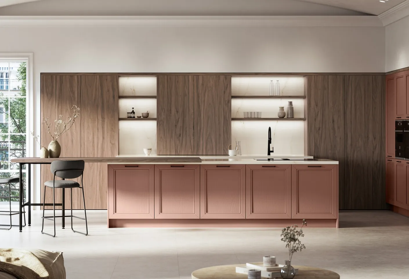 Choose Opera 01 kitchen: Arredo3's classic solutions in matte lacquer guarantee quality, style, and design.
