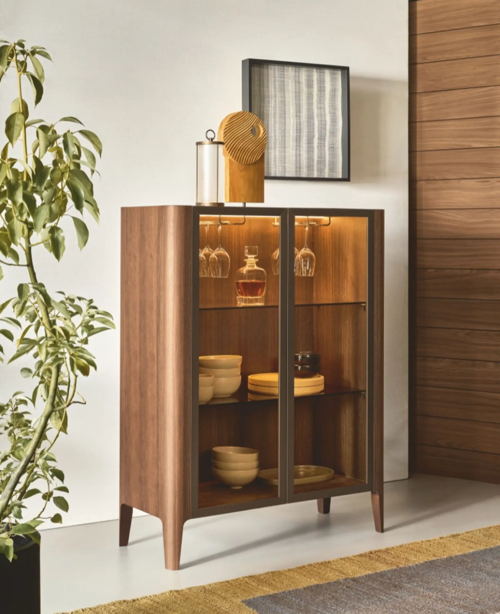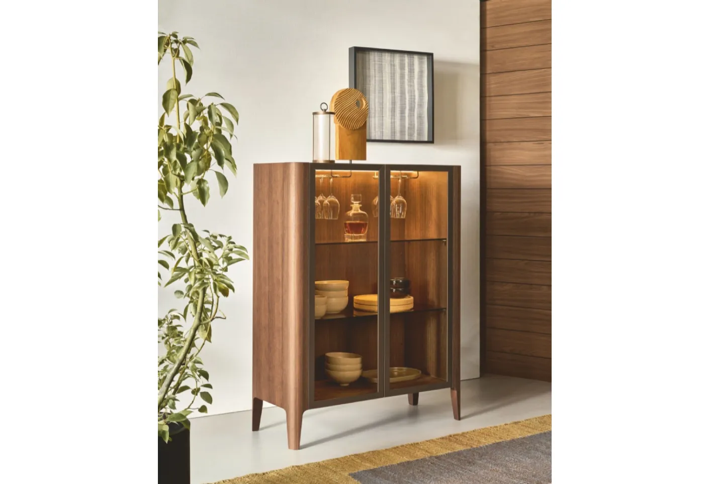 Madie contribute to organizing assorted objects, books and magazines, as well as adding value to the space by blending functionality and style. The choice of Madie for the living room or dining room is related to the available space, but also involves the style of the environment and personal needs. If you desire a glass sideboard to place in your home, do not miss the opportunity to see our exclusive furniture compositions up close. For a respectable living room or dining room, choose this Madia Cross with glass doors from Riflessi among the various modern proposals offered by the company. Remember that you will often welcome friends and family for a few hours of company: it is essential that the space be well-managed and have great aesthetic value.