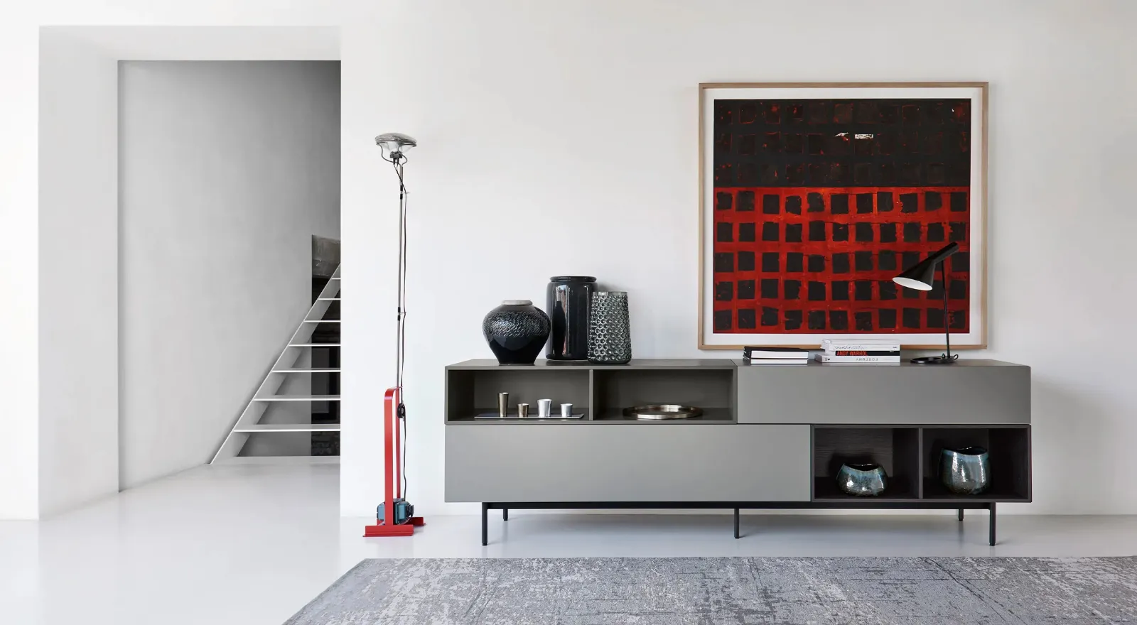If you are a furniture enthusiast and always stay up to date on the latest trends in the industry, our showroom is the right place for you. Modern sideboards, including the model shown in the photo, personalize the living room or dining area thanks to carefully studied lines and great storage capabilities. If you are looking for a space-saving living room furniture model, explore our store's rich catalog of Home Furnishings from the best brands and contact us for information and quotes. The Madia Open 02 by Sangiacomo in the photo in matte lacquer solves the most unique space and style needs, furnishing the living area with practicality and a unique design.