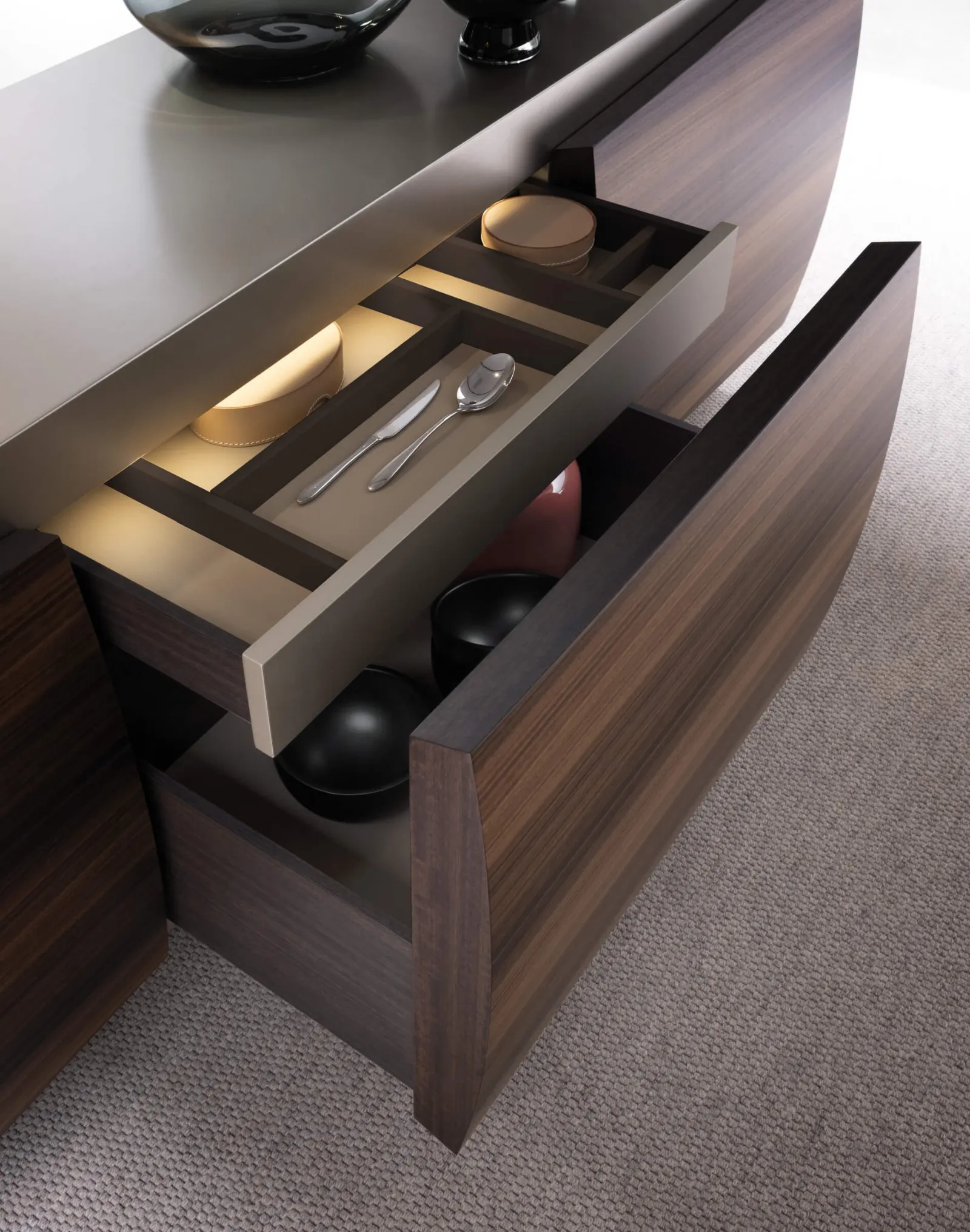 Even in a fairly small living room, these living room furniture pieces are able to solve various housing issues, guaranteeing various possibilities for customisation. Modern sideboards, including the model visible in the photo, enhance the living room or dining room thanks to their unique design and great storage capabilities. The Presotto's Vele Sideboard in the wooden image solves the most personal space and style needs, furnishing the living room with practicality and a unique style. If you are looking for a space-saving sideboard, discover a wide range of Home Furniture from the best brands in our store and contact us for information and quotes. If you are passionate about furniture and always up-to-date on design evolution in the industry, our showroom is the ideal place for you.