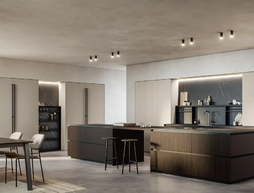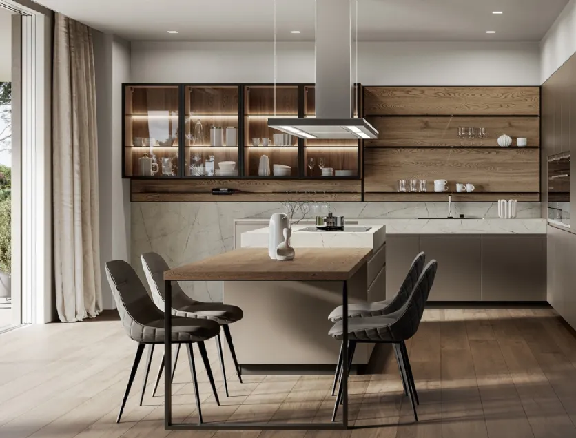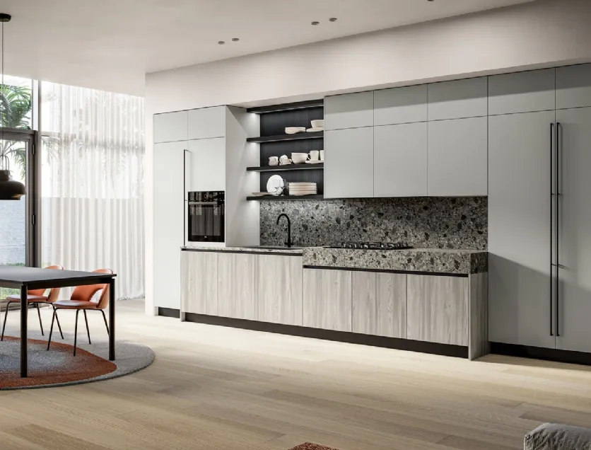 A small kitchen is more functional if furnished with modern modular custom-made furniture and accessories, with simple and minimal shapes, which allow you to move freely and always have everything at hand. Our exhibition center of Modern Kitchens houses the solutions of the best brands on the market to offer each customer a constantly updated selection, both from the point of view of aesthetics and from the point of view of practicality. If you want to discover new fashions and trends, visit our showroom and contact our furniture consultants for personalized assistance from the design to the realization of the kitchen area you've always dreamed of. The new solutions have larger containers, lowered plinths, deeper modules and vertically developed design elements, to allow greater optimization of the environment. Kitchens in modern style like them for their functionality, for their well-defined style and because they are ideal for furnishing small spaces, as well as open spaces, as they can be made to measure. More and more often without handles, they have uniform fronts with groove opening: this is one of the most identifying characteristics of these solutions, in fact the groove opening gives a sense of essentiality, rigor and sobriety to the kitchen area.