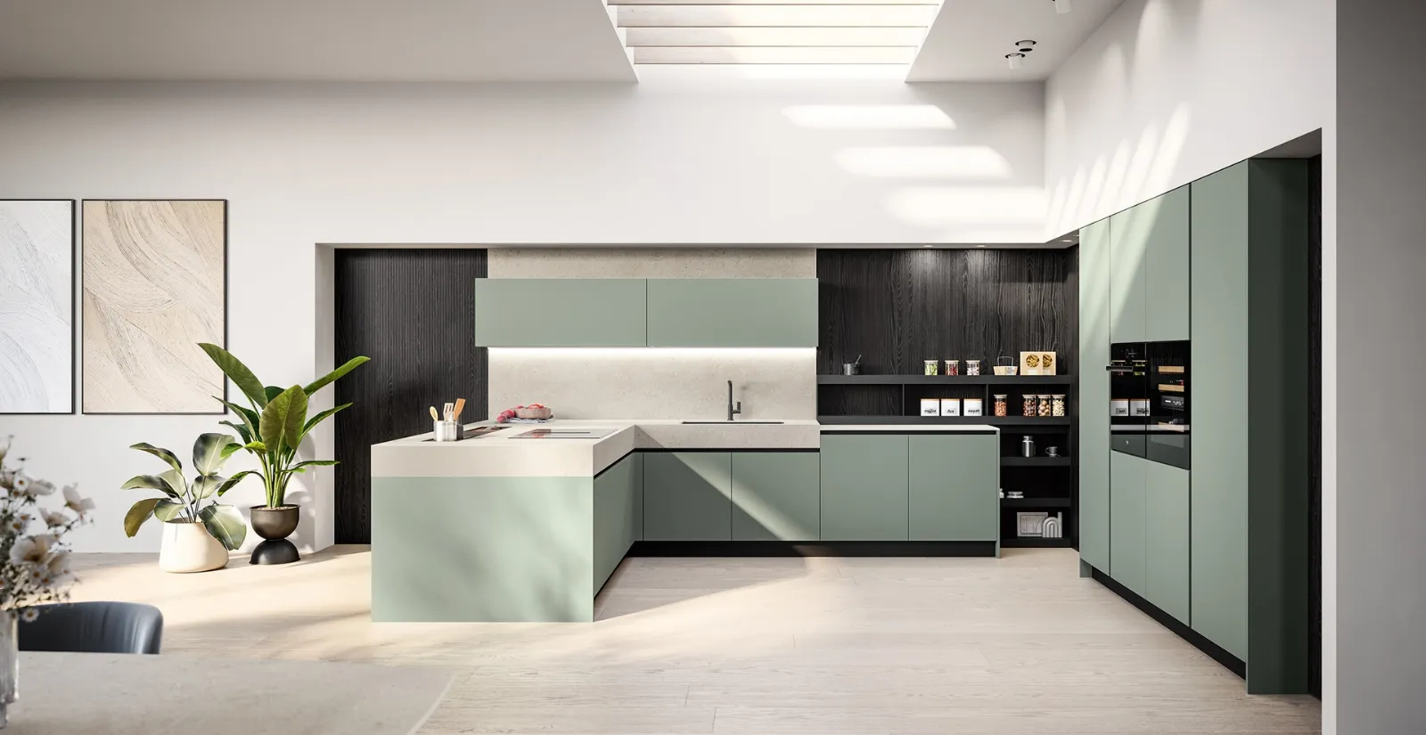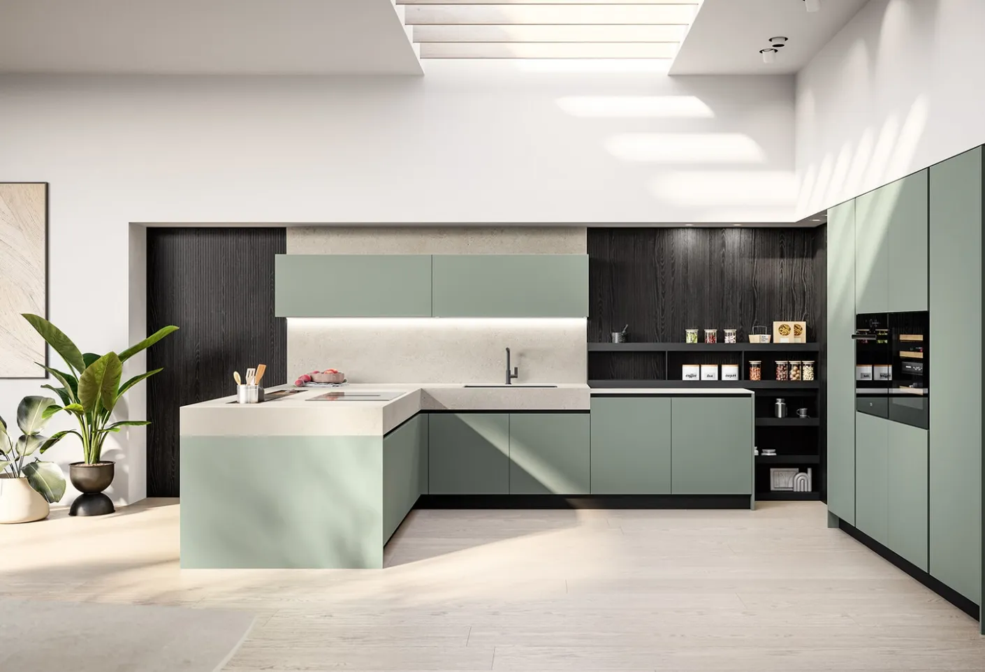 To make the Modern Kitchen with Cloe 05 peninsula by Arredo3 one of the most beautiful solutions of the brand, in addition to its beautiful designs, is the material: it is built in laminate to ensure comfort and durability over the years. Various modern proposals with a peninsula for the kitchen area await you, ideal for those looking for a welcoming, functional, and elegant yet contemporary style. If you want a solution with essential lines, characterized by a less "heavy" design, we recommend choosing the Modern Kitchens from the Arredo3 brand.