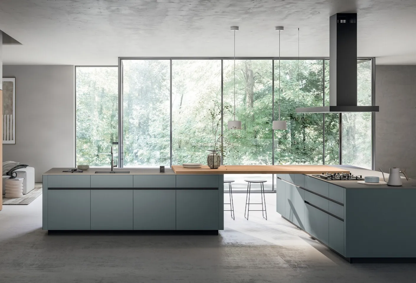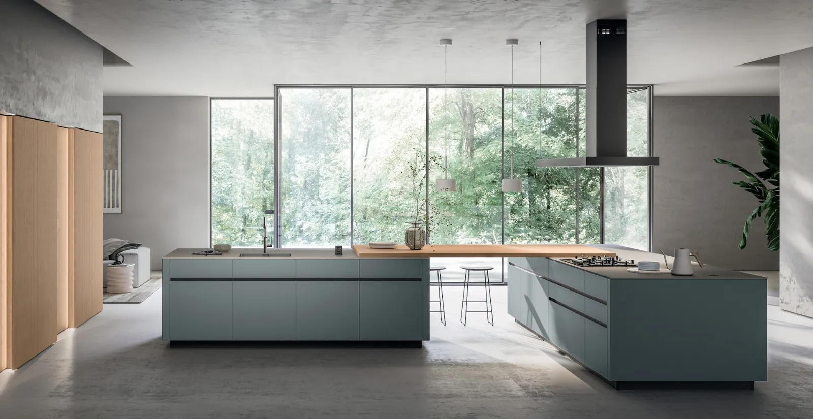 Modern kitchens with island: click and discover a rich catalog of solutions from the brand Arredo3, including the Glass 2|0 01 model.