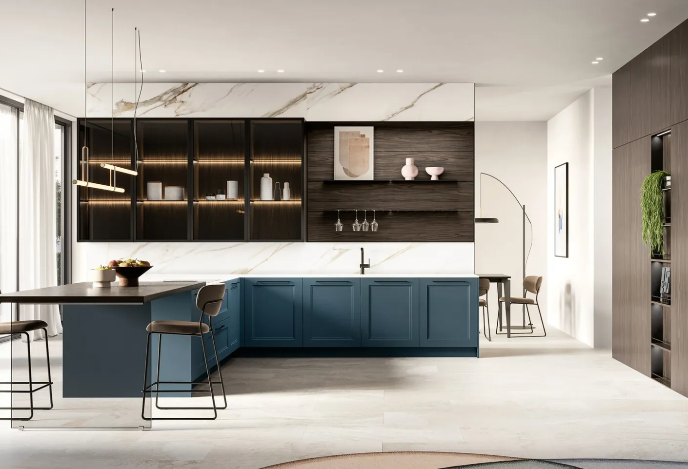 Discover a wide range of modern kitchens with a peninsula from the best manufacturers: we have selected for you the most original solutions from Arredo3, characterized by strong lines and maximum modularity. If you want a composition in matt lacquer, we suggest the model shown in the photo: quality materials and trendy finishes are guaranteed. With the Modern Kitchen with peninsula Meg 01 from Arredo3, you can organize the spaces to their fullest potential, perfectly combining unique practicality and well-studied lines.