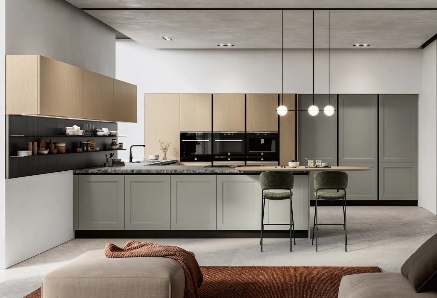 Keep in mind that the kitchen is a space subject to damage from moisture and heat: the proposal in the photo, like all Modern Kitchens on the market, requires appropriate cleaning and maintenance. In our store, you will find a rich catalog of Modern Kitchens Arredo3 of great charm, in various colors and trendy materials and of various configurations. The choice of the new kitchen will depend on the layout of the room, its style, and your needs for space, functionality, and storage. Choosing this Modern Kitchen with peninsula Meg 02 by Arredo3 in matte lacquer means designing the spaces by enhancing them fully, without sacrificing style.