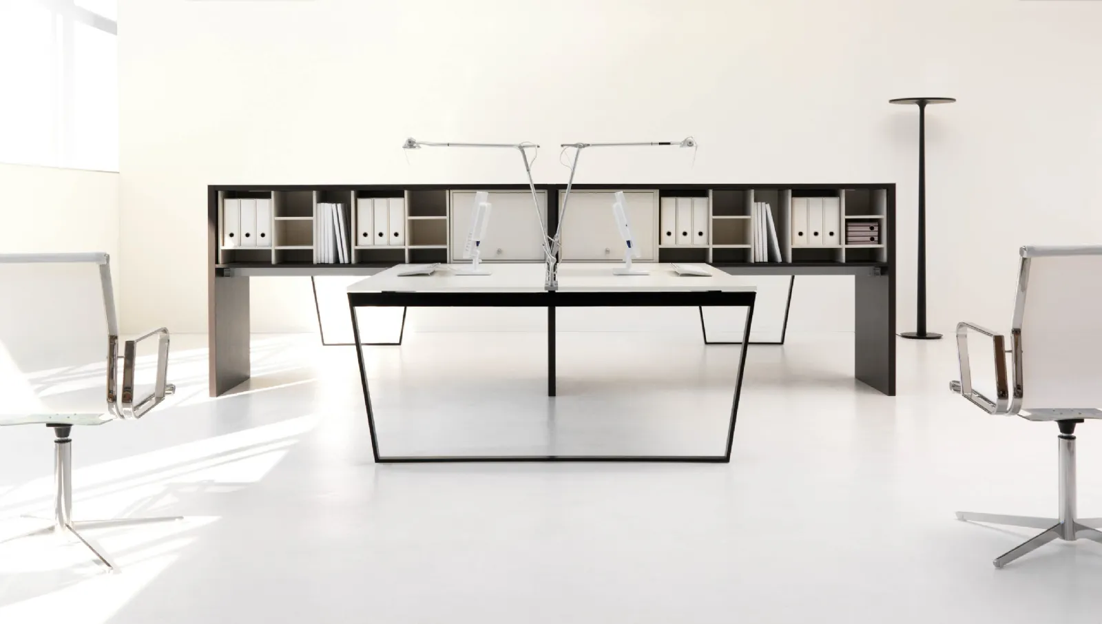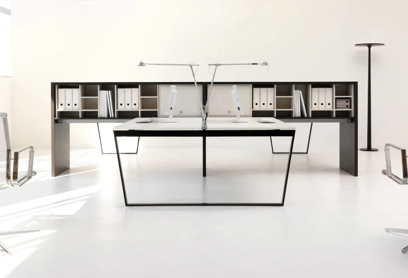 The furnishing solutions that we present in our store are the result of the many years of experience and dedication of leading companies in the field, such as IVM. In the showroom you will discover the compositions of Office Furniture with melamine operational desks of the most famous brands to complete the space with logic and coherence. Arko office furniture by IVM: ideal for solving various problems, in fact it optimizes all available spaces by fully enhancing them. Choosing the most suitable office furniture for your needs is essential if you want to create a versatile and well-organized space. This solution, among multiple IVM melamine operative desks, is ideal for completing the furnishing of working environments with functionality.