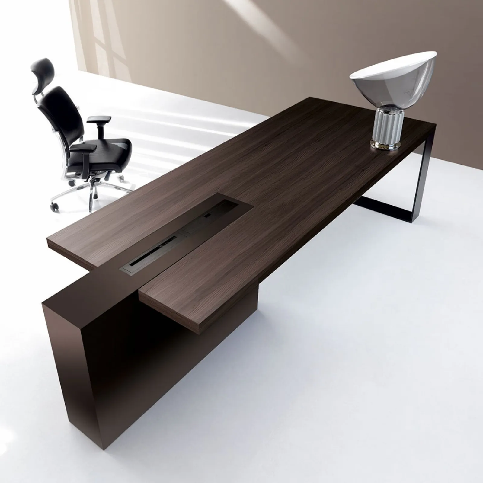 In our shop, we offer various compositions with IVM wooden executive desks, always made of high-quality and durable materials. High-quality materials, good aesthetics, and unique design characterize the rich line of office furniture from the IVM brand. The "New Loop" walnut executive desk by IVM is custom-made to complete work environments while ensuring the comfort of those who work there, with good aesthetic results. The well-known and renowned brand always moves in line with individual needs, producing all kinds of wooden office furniture. Nowadays, office furniture must meet the needs of practicality and comfort for those who carry out work, as well as the needs of welcoming and seriousness, especially for clients.